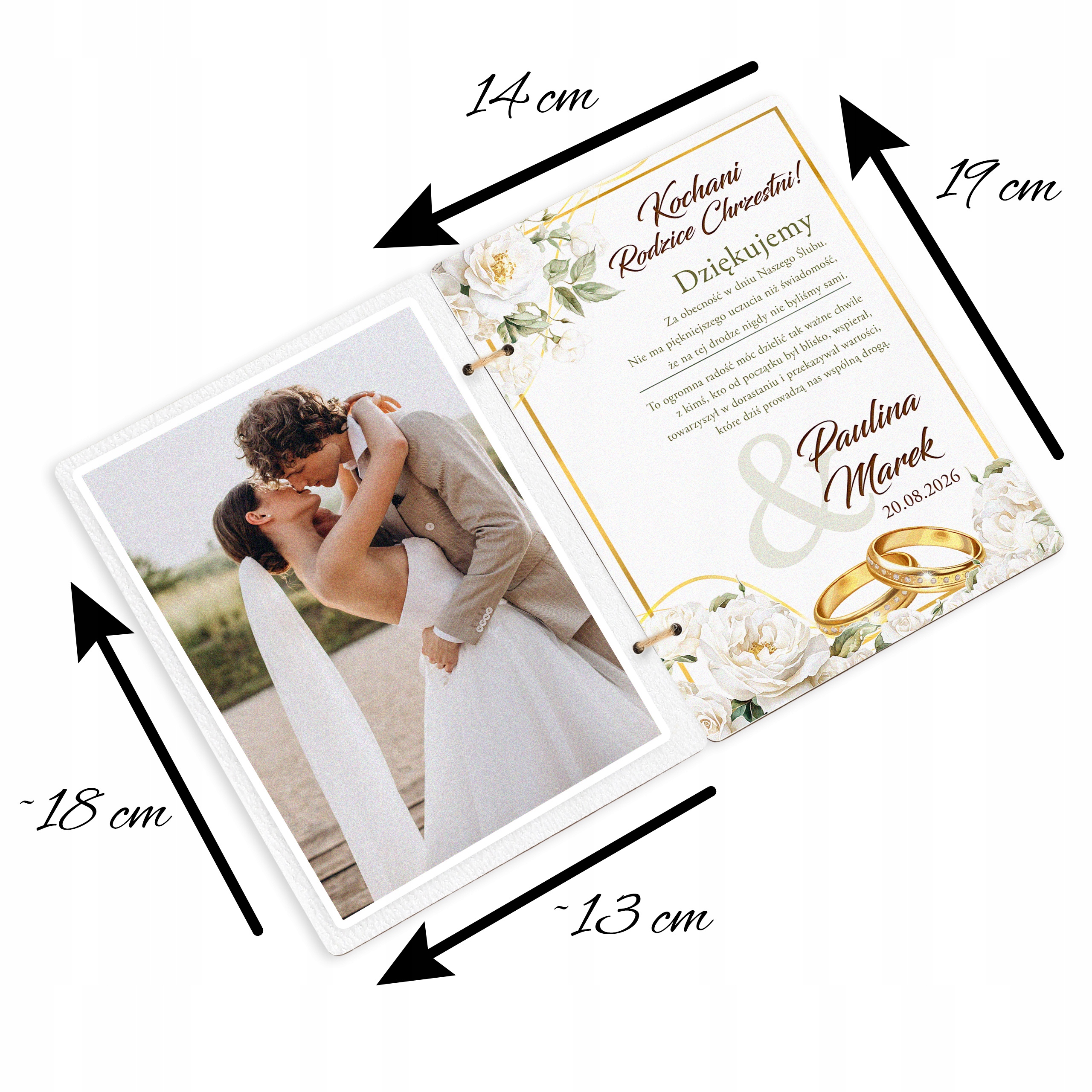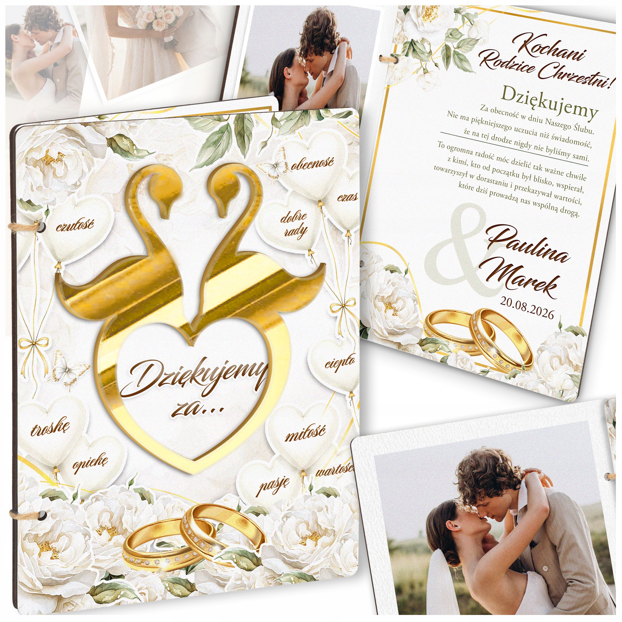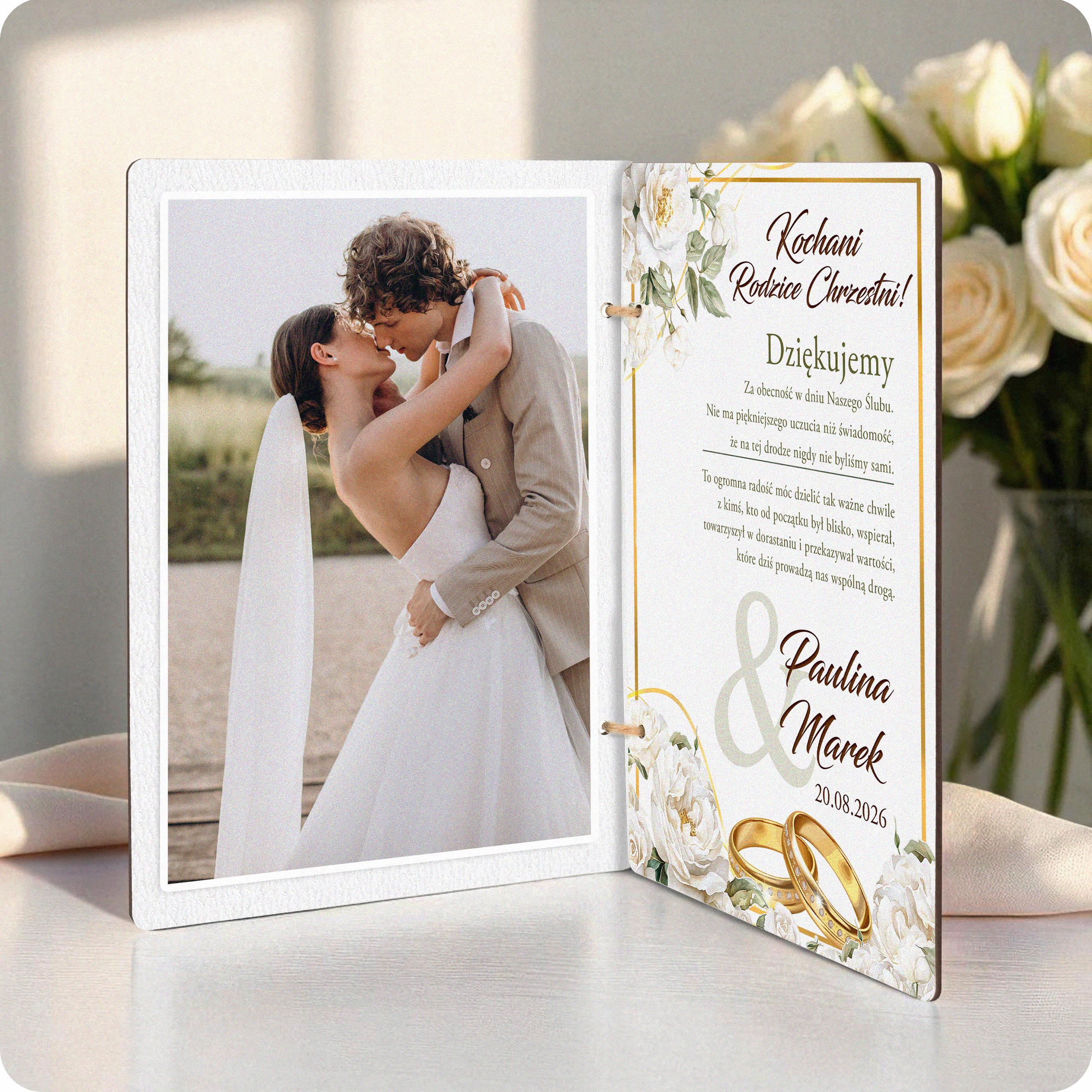⭐ Оригінальна подяка кумам/кумі/кумові з нагоди весілля - Дерев'яна листівка з персоналізацією та місцем для фото!