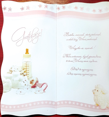 Просматривая «Открытка о рождении дочери DCN3», вы можете быть уверены, что данный товар из каталога «[rubrica_name]» будет доставлен из Польши и проверен на целостность. В цене товара, указанной на сайте, учтена доставка из Польши. Внимание!!! Товары для Евросоюза, согласно законодательству стран Евросоюза, могут отличаться упаковкой или наполнением.