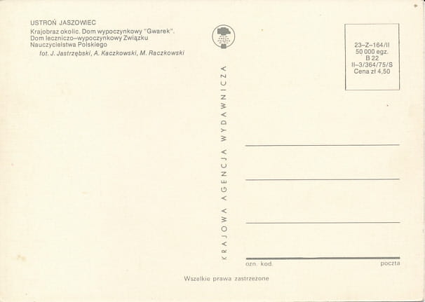 Покупая «Открытка Устронь - 014301» данный товар из каталога «Силезия (Шлезьен)» вы можете быть уверены, что после оформления заказа, доставки в Украину, вы получите именно то, что заказывали, в оговоренные сроки и европейского качества.