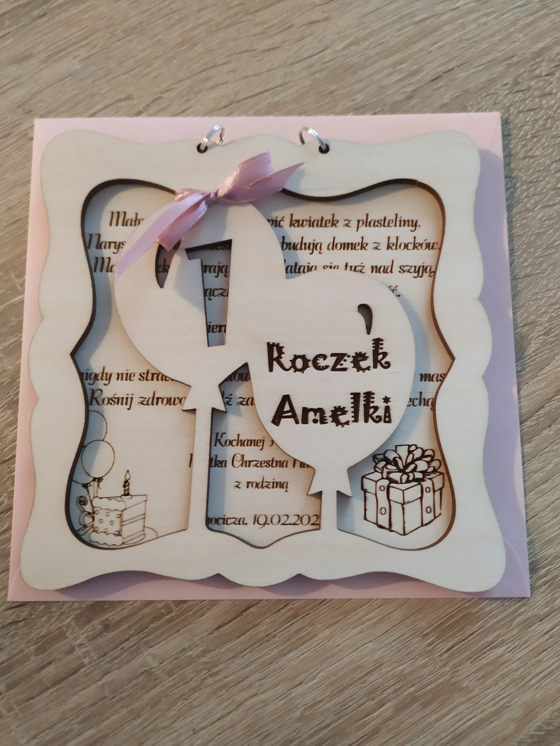 Дерев'яна листівка, що складається з двох елементів, з'єднаних між собою дуже оригінально і зручно. Пам’ятайте, що кожен персоналізований подарунок є вираженням зобов’язань у підготовці подарунка, а також свідченням особливої прихильності до людини, яка його отримує.