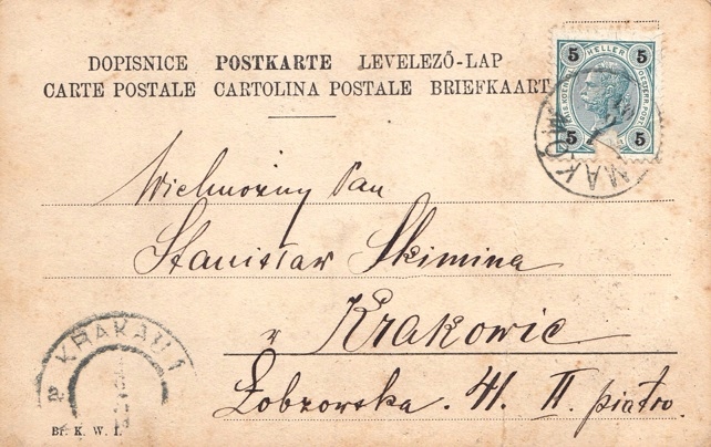 ЛИСТІВКА З ПОЧАТКУ ХХ В. Скіміна проф. Ягеллонського університету