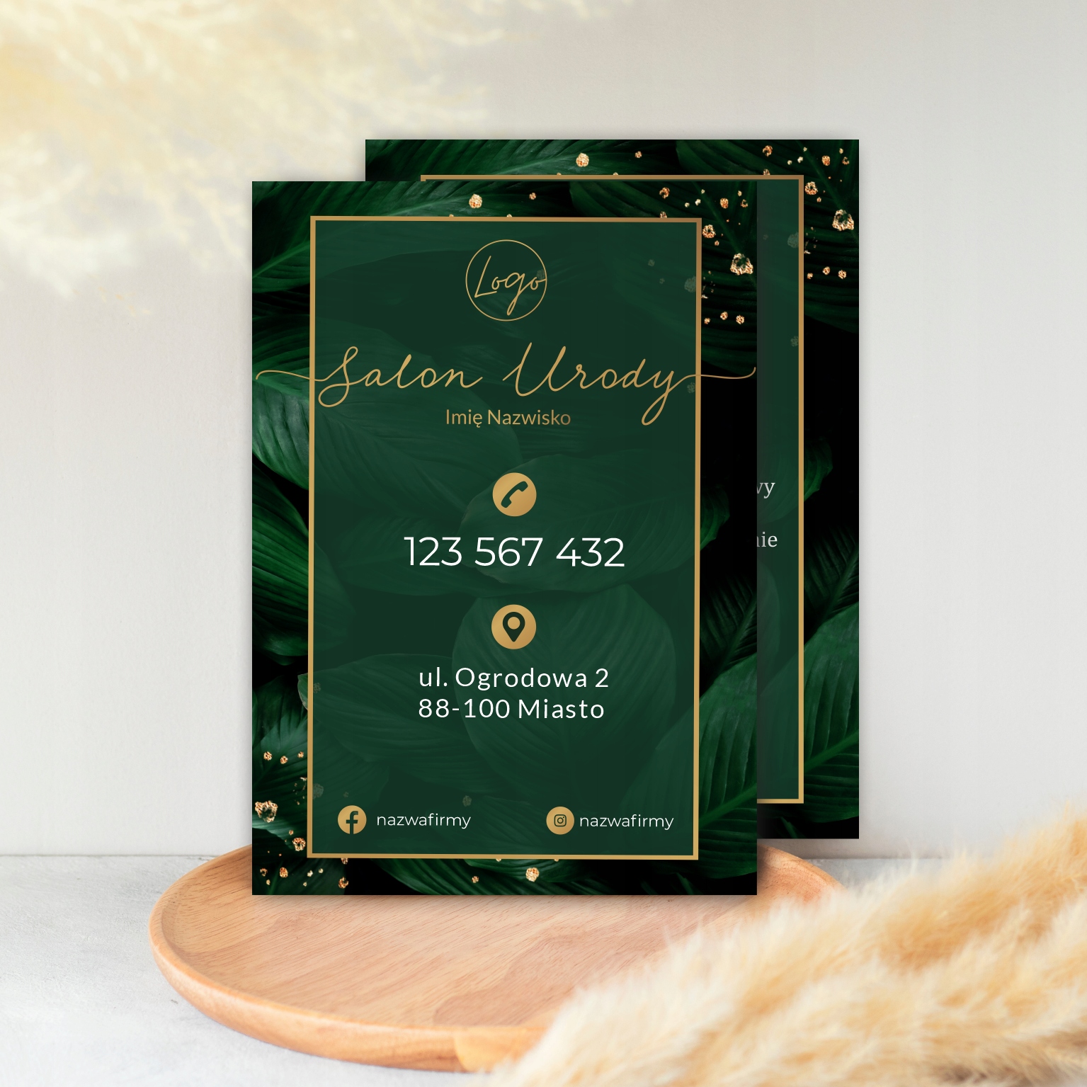 Рекламні листівки з мотивом листя ідеально підходять для салону краси, перукаря, візажиста, стиліста брів.