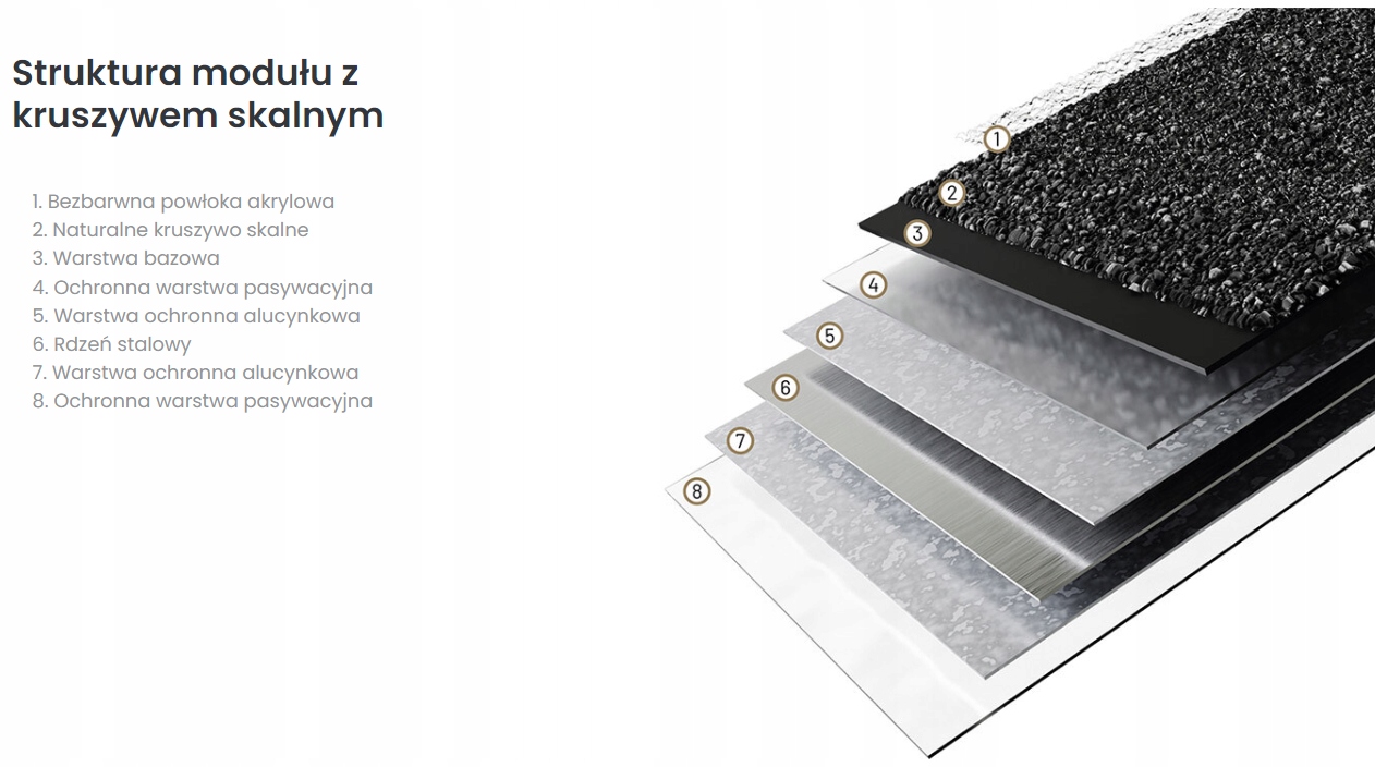 Його використання забезпечує стійкість на дах до екстремальних погодних умов у часі швидких змін клімату. Гарантія на 60 років підтверджує обіцянки. Це продукт, якість, надійність, міцність та дизайн, сподобається вимогам клієнтів, які шукають природні, екологічні матеріали. Варто надягати природну поверхню базальтового каменю з ще однієї причини. Безперечно, наш клімат змінюється. Спека влітку нестерпна, а громові дахи, покриті природним каменем, дуже хороша теплоізоляція.