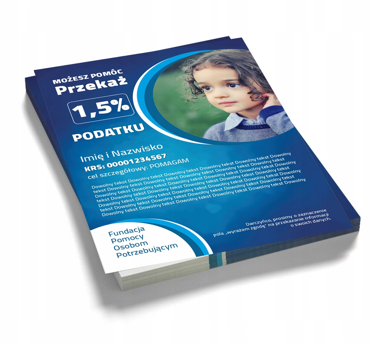 Листівки, які заохочують вас пожертвувати 1,5% вашого податку, є чудовим вибором через їх невеликий, компактний формат, який підходить в будь-яку кишеню чи кишеньковий гаманець.