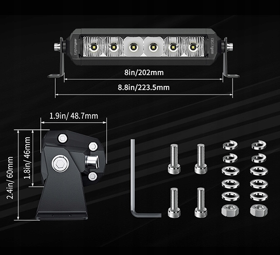 Stripe LED Панель CCL-SD6-30W - ідеальне рішення для освітлення позашляховиків. Потужність 30 Вт і світлодіоди Osram забезпечують вражаючу яскравість освітлення. Довжина 223,5 мм робить панель ідеальною для різноманітних застосувань. Він пропонує потужність світла 2865 лм, водночас водонепроникний відповідно до стандарту IP69K. Простий у складанні, набір включає повний набір проводів, необхідних для професійного встановлення.