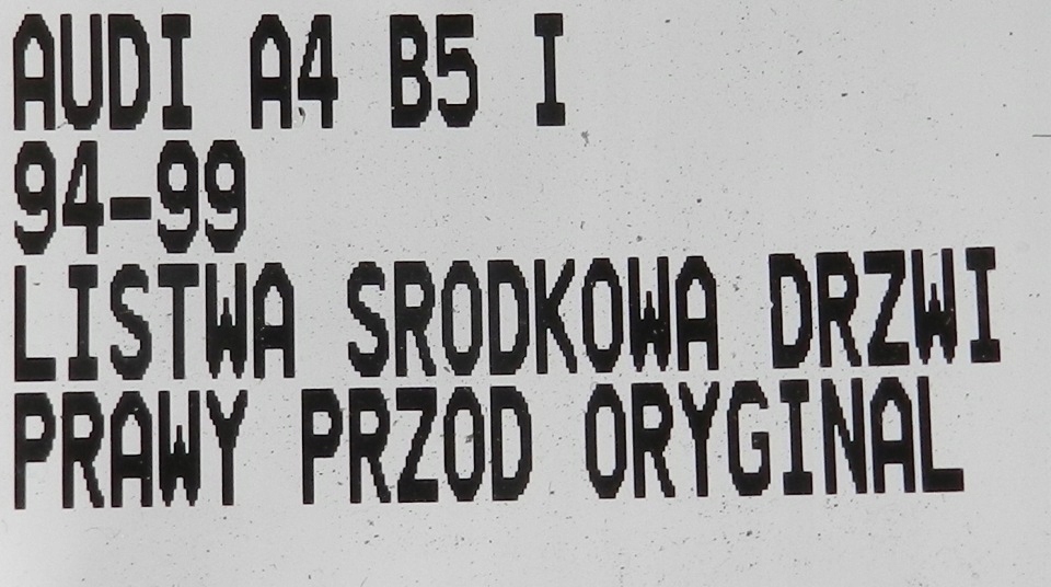 Оплачивая «LISTWA ŚRODKOWA DRZWI PRAWY PRZÓD AUDI A4 B5 94-99», вы можете быть уверены, что данное изделие из каталога «Молдинги» будет доставлено из Польши и проверено на целостность. В цене товара, указанной на сайте, учтена доставка из Польши. Внимание!!! Товары для Евросоюза, согласно законодательству стран Евросоюза, могут отличаться упаковкой или наполнением.
