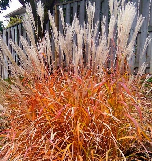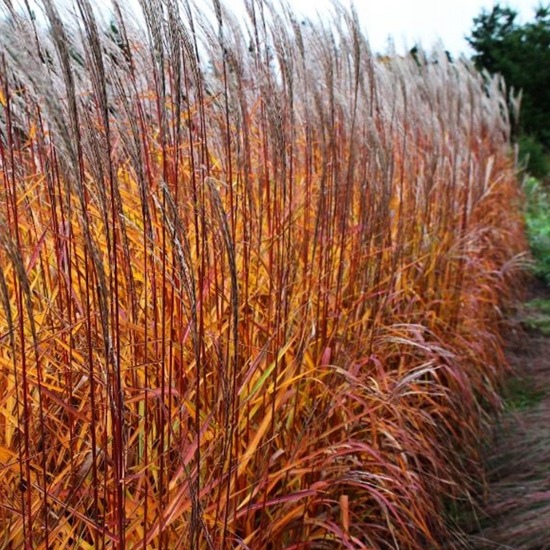 Міскантус китайський "Purpurascens" – це декоративний різновид міскантуса з пучками з дуже червоним осіннім кольором листя.