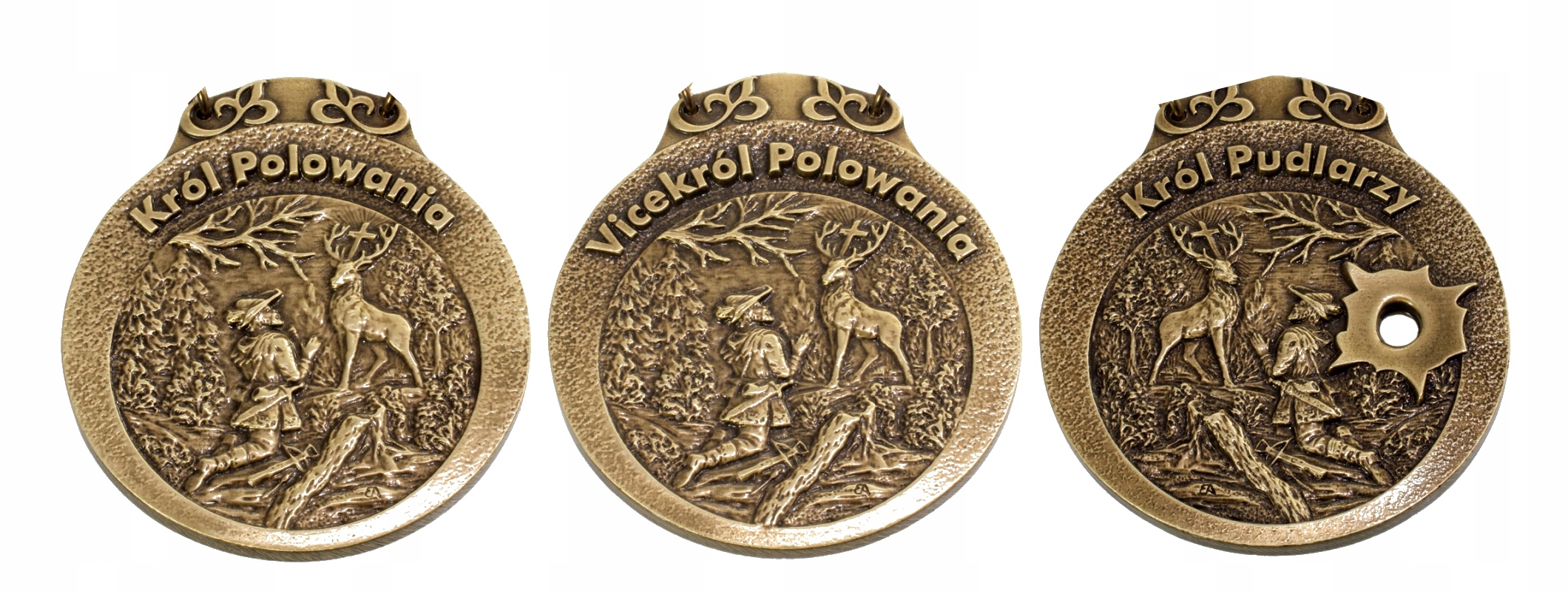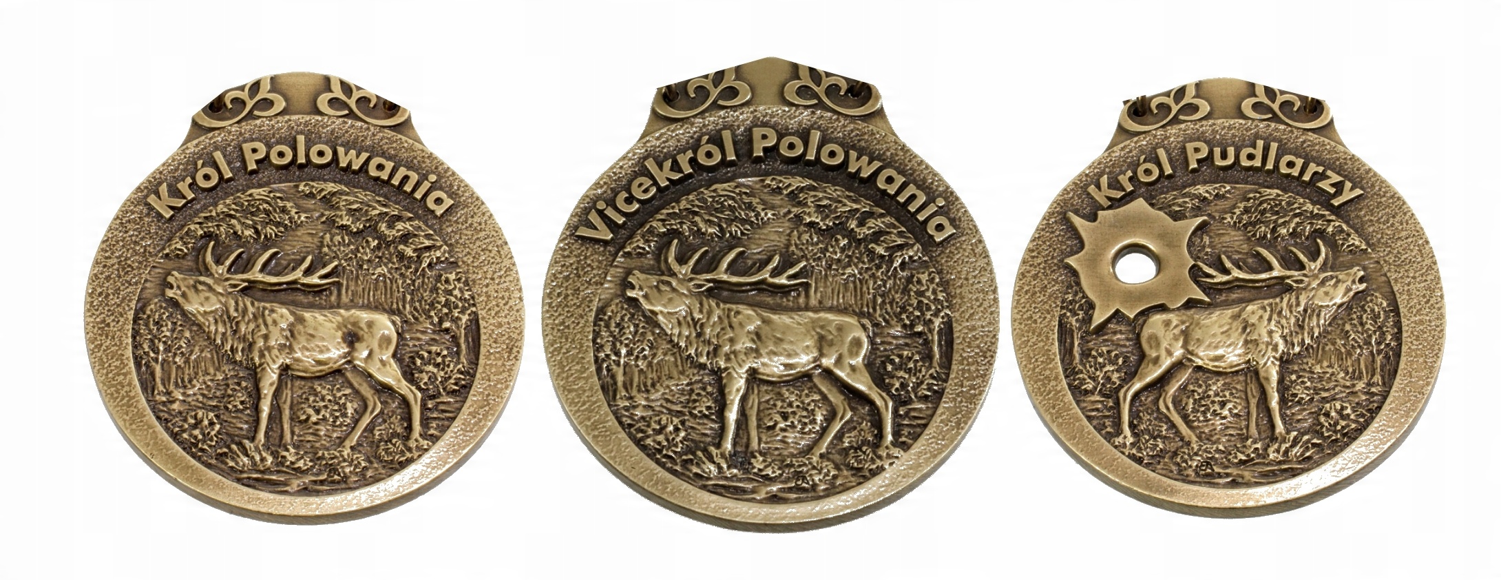 Мисливські медалі, їх ще називають мисливськими, - це унікальні прикраси, відлиті з металу та покриті гальванічним покриттям. Вони характеризуються елегантним покриттям, яке часто набуває форми патинованої латуні, що надає їм унікального характеру у вигляді т.зв. старовинне золото.