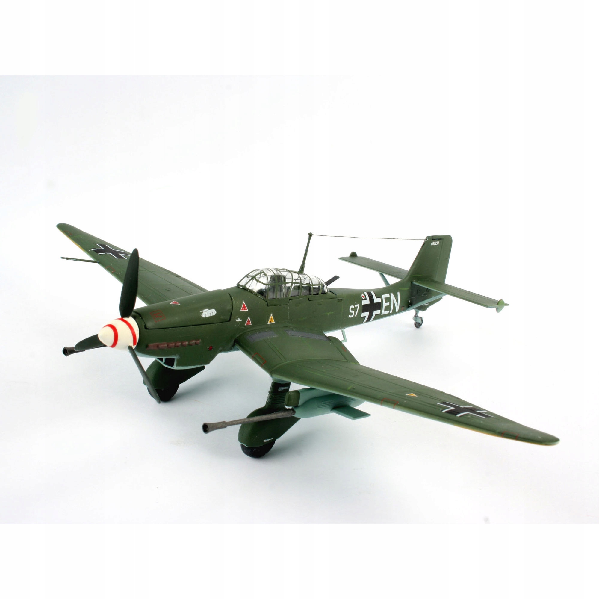 Модель літака Junkers Ju 87 Stuka з новими формами, включаючи ряд конструктивних деталей: Двигун Jumo 211 Рухомий пропелер Детальна кабіна Деталізована поверхня Знімний капот двигуна Одна подвійна гармата MG Дві бомби SC 50 Дві окремі гармати для версії G-2 Наклейки для двох версій: Junkers Ju 87G-2 з 10. (Pz) St.G 3, Якобштадт, Латвія; Липень 1944 р. Junkers Ju 87D-3 of 4./St.G 2, Росія 1944 р.