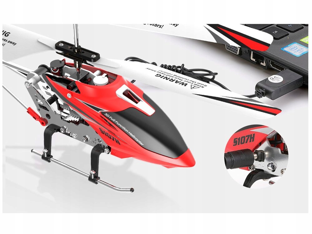 - модель має індикатор, який інформує про занадто низький заряд батареї, коли батарея розряджена, вертоліт автоматично знизиться та безпечно приземлиться.