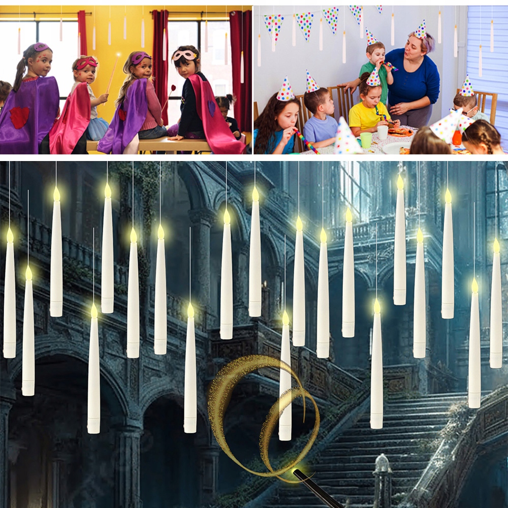 Набір із 20 мерехтливих плаваючих свічок із чарівною паличкою та функцією 6-годинного таймера, світлодіодних свічок із дистанційним керуванням, безполум’яних підвісних літаючих свічок для прикраси на Хеллоуїн
