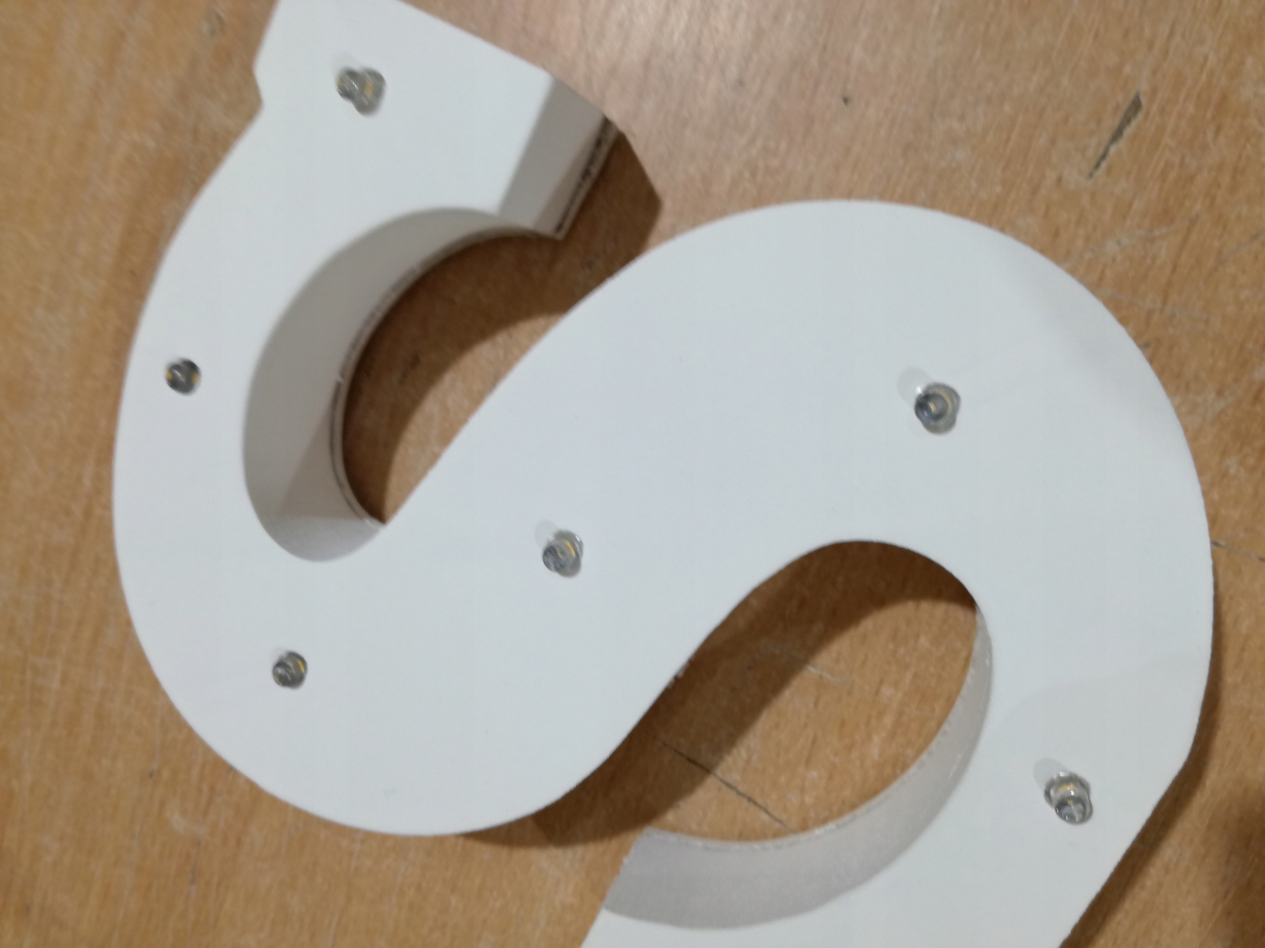 Літера S з підсвічуванням, 7 світлодіодів, дерево, білий