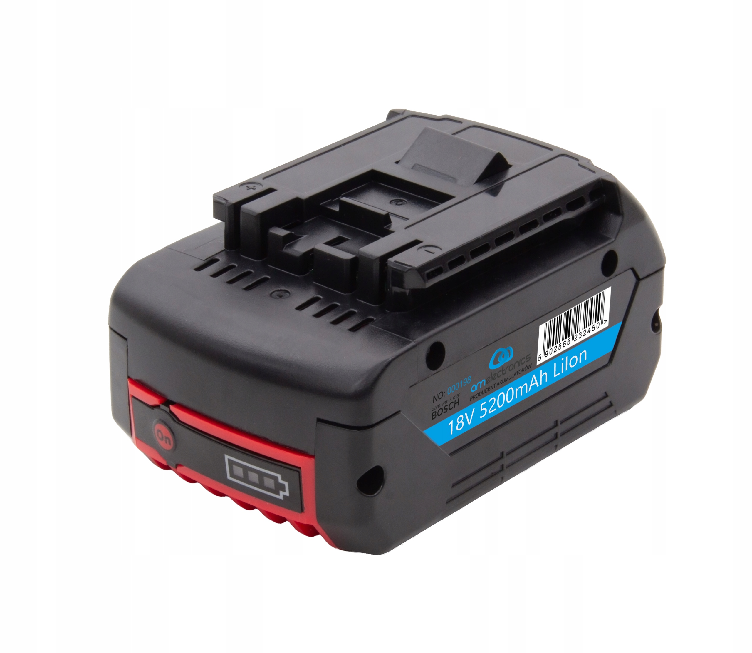 Високоякісний літій-іонний акумулятор 18 В 5,2 А·год (5200 мА·год) із високострумних елементів преміум-класу (Panasonic / Samsung / LG / Sony-Murata). Забезпечує максимальну потужність, тривалий час роботи та повну сумісність з електроінструментами серії Bosch Professional.