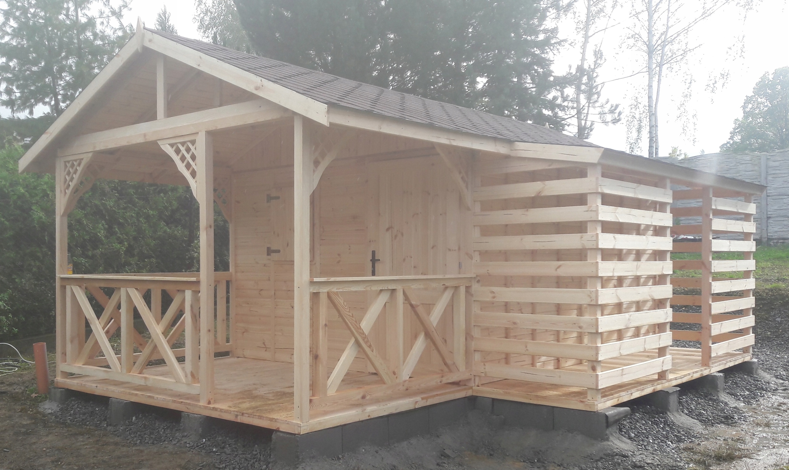 Дерев'яний будинок з терасою з фундаментом 6х3 м. Житлова площа 4х3 м, тераса 2х3 м. Ідеально підходить для відпочинку. Стінки за технологією шпунт-карбон товщиною 19 мм. Товщина балок під перекриттям 5х5 см. Будиночок виготовлено з деревини сосни, висушеної в сушарці до вологості 15%. Сушка забезпечує захист від синяви та грибків. Ці критерії мають значний вплив і забезпечують тривалудовговічністьнашого продукту. Перекриття та дах в комплекті - будинок повністю обшитий дошкою. Конструкція будинку передбачаєутепленнязсередини.