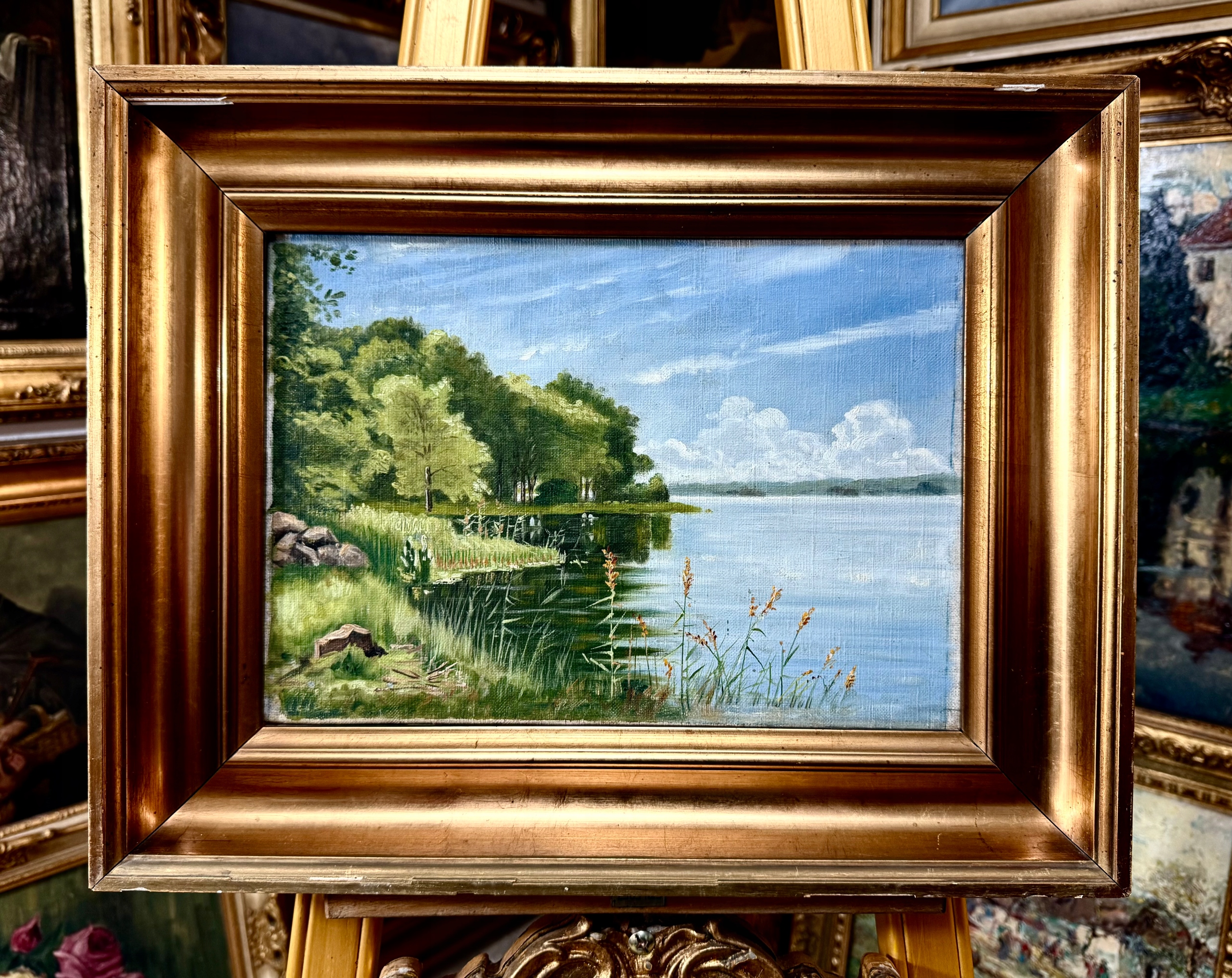 ЛІТНІЙ ВИД НА ОЗЕРО КРАСИВА ДОВОЄННА КАРТИНА І РАМА