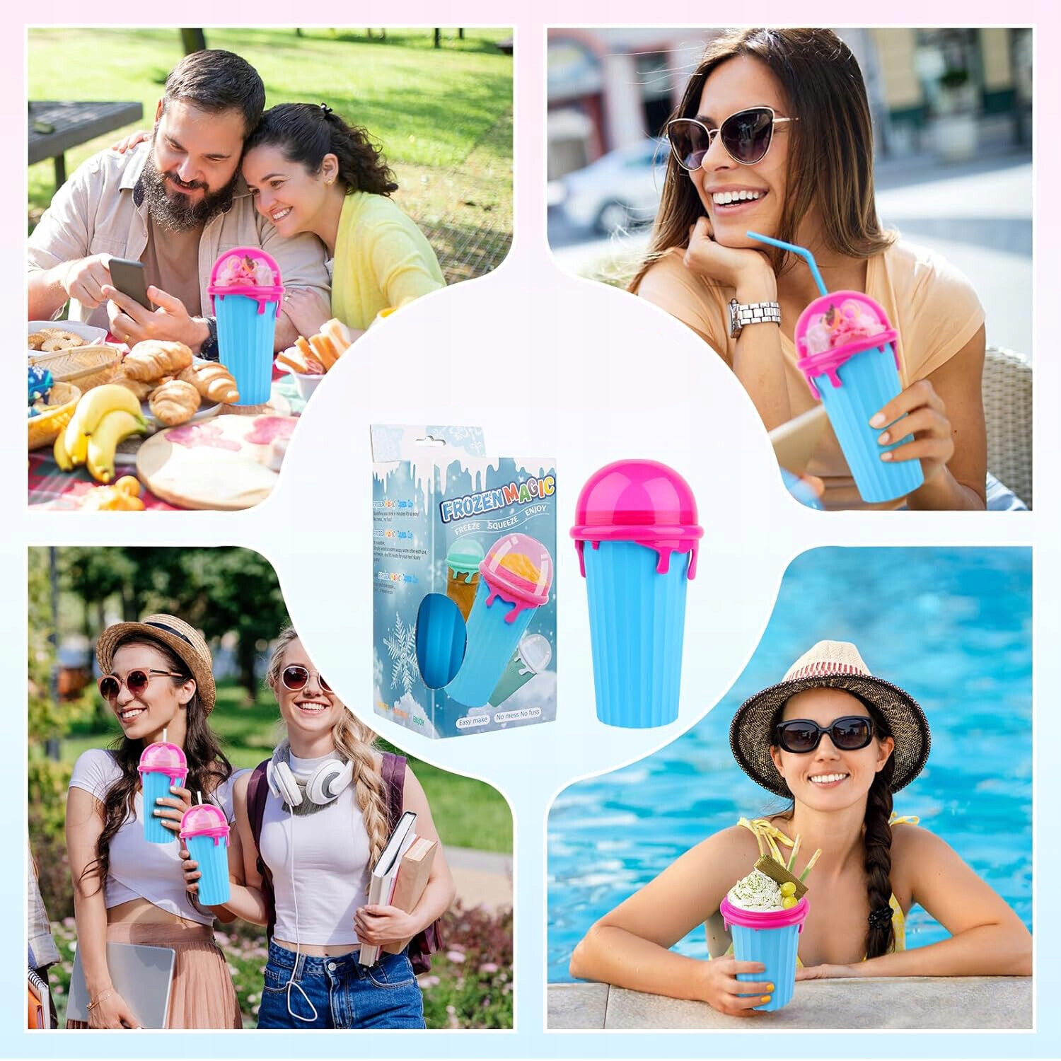 🍧🍧material, призначена для контакту з їжею: ? Життя. Це все, що вам потрібно зробити, щоб підготувати смачні коктейлі та насолоджуватися саморобкою. Вимийте кружку (Порада: Ви не можете мити в пральній машині!) І знову заморозити, щоб розпочати наступну пригоду з заморожуванням. B> Солома і ложка 2 W 1 можна використовувати як ложку або солому окремо для задоволення ваших потреб. Багатофункціональна солома можна видалити.