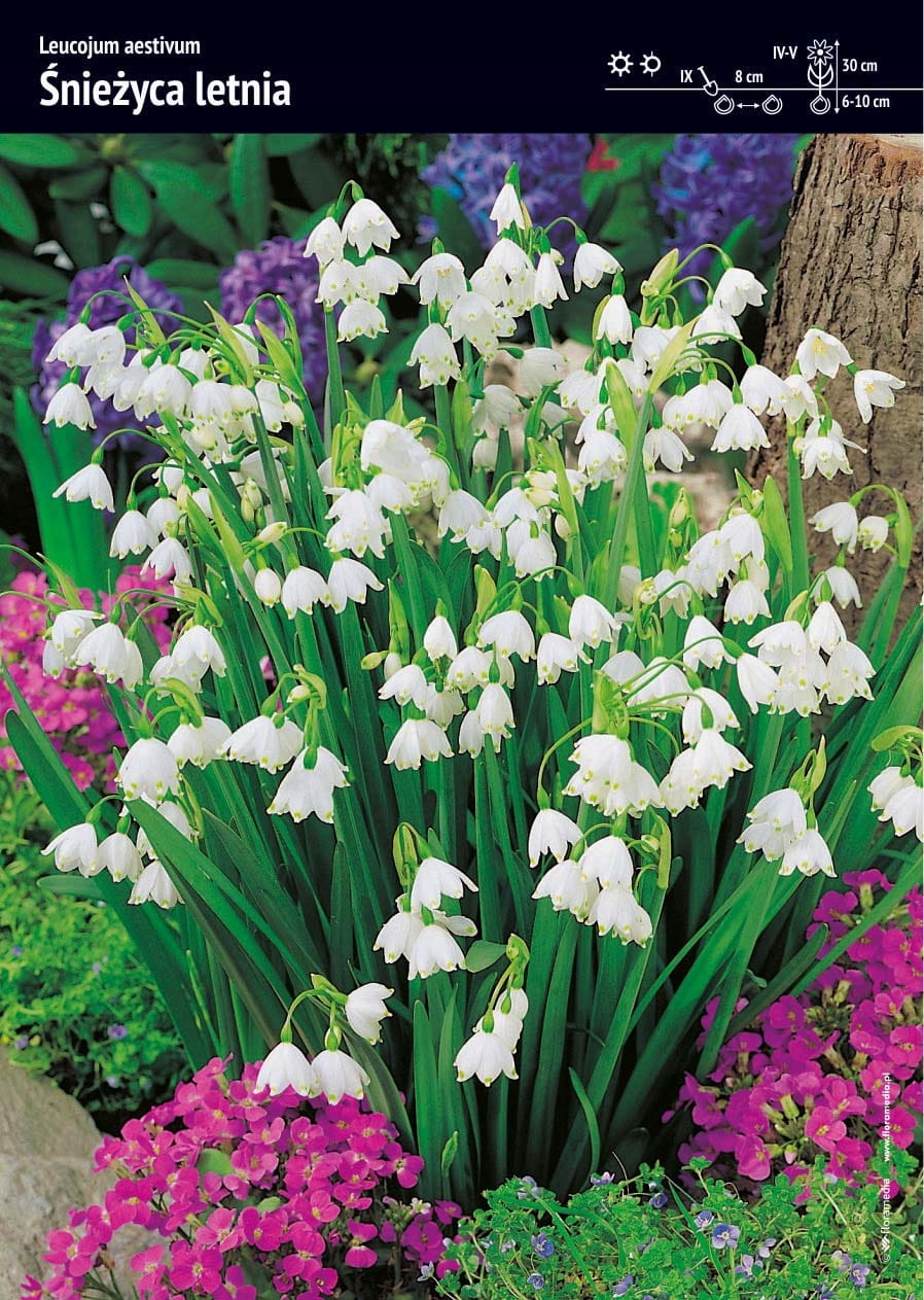Пролісок літній (Leucojum aestivum) – це рослина, яку часто плутають із популярним підсніжником. Він більший за згаданий підсніжник, тому що виростає до 30 см і дає квіти дещо іншої форми. Білі, дзвонові з характерною зеленою плямою на кожній пелюстці. Цвіте ця рослина вже в квітні. Найкрасивіше виглядає при посадці групами і добре загущується. Він може впоратися з будь-яким ґрунтом. Його можна використовувати як бордюрну рослину або висаджувати під високими деревами в компанії нижчих рослин.