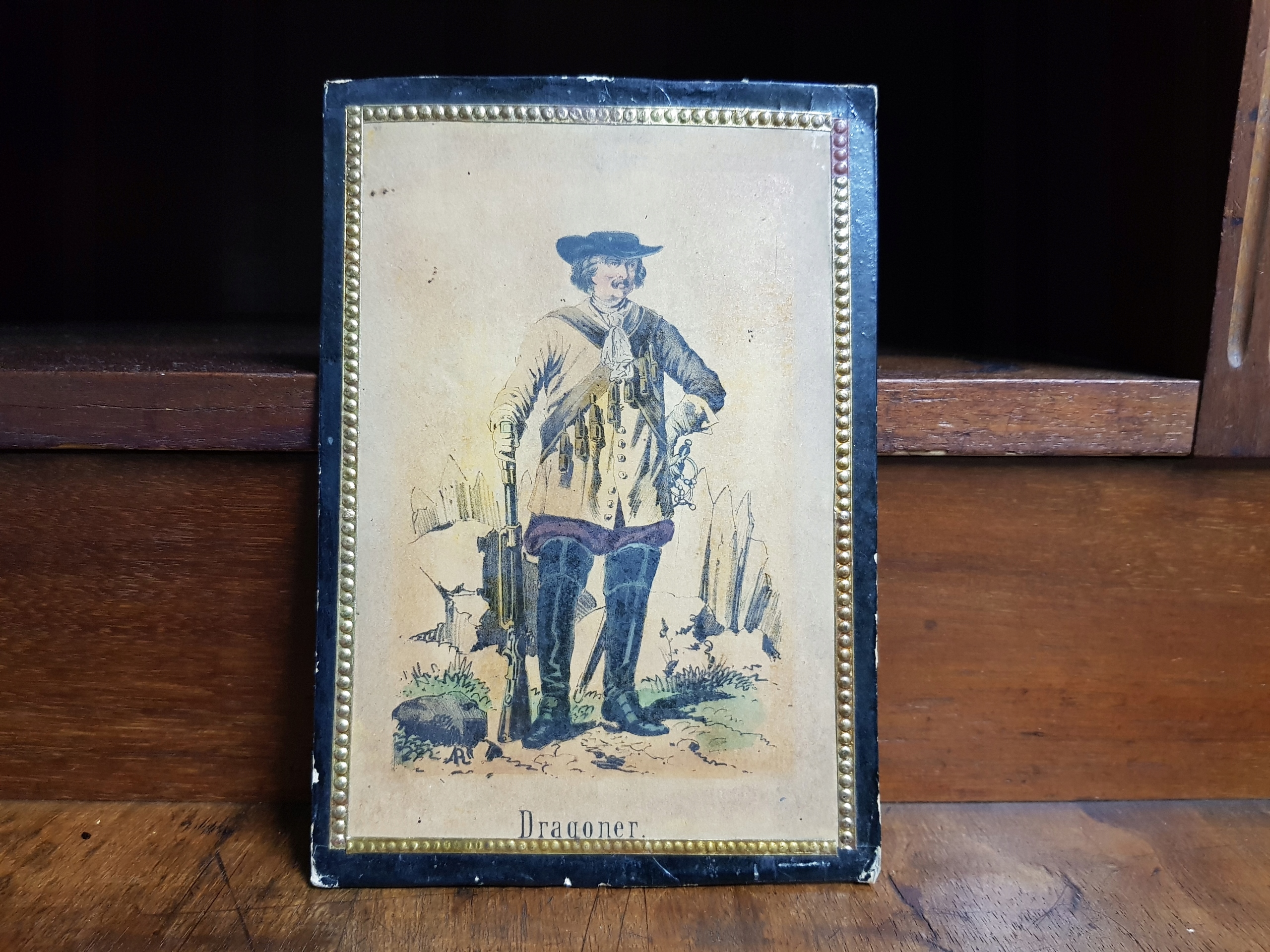 Предметом аукціону є старовинна літографія солдата-драогонера.