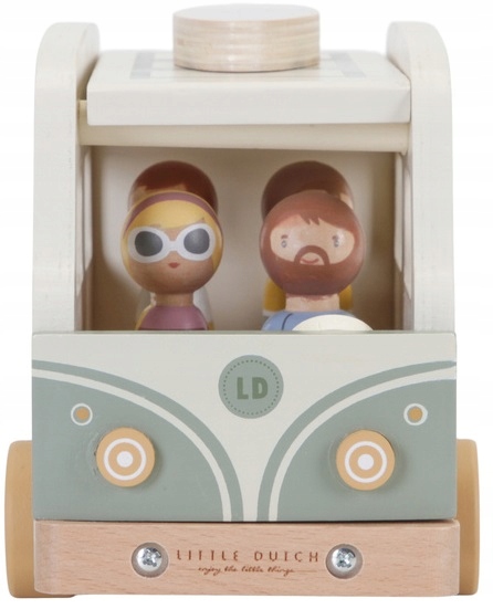 Це ідеальна іграшка для розвитку моторики умінь і фантазії, які гарантують вашій дитині фантастичне задоволення. Дах цього дерев'яного кемпера знімний, тому всередину легко помістяться 4 дерев'яні ляльки. Кришка багажника також відкривається, тому ви можете сховати туди свій багаж.