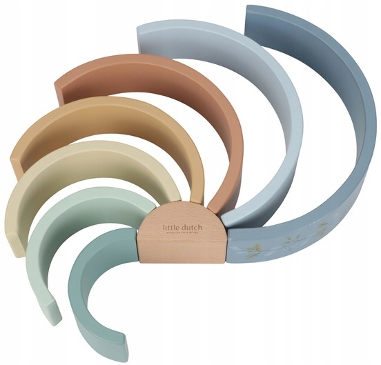 Дерев'яна веселка Forest Friends від Little Dutch. Вона складається з 8 арок різного розміру, які підходять одна до одної. Цей веселковий пазл синього, жовтого та зеленого кольорів розвиває дрібну моторику та уяву дітей.