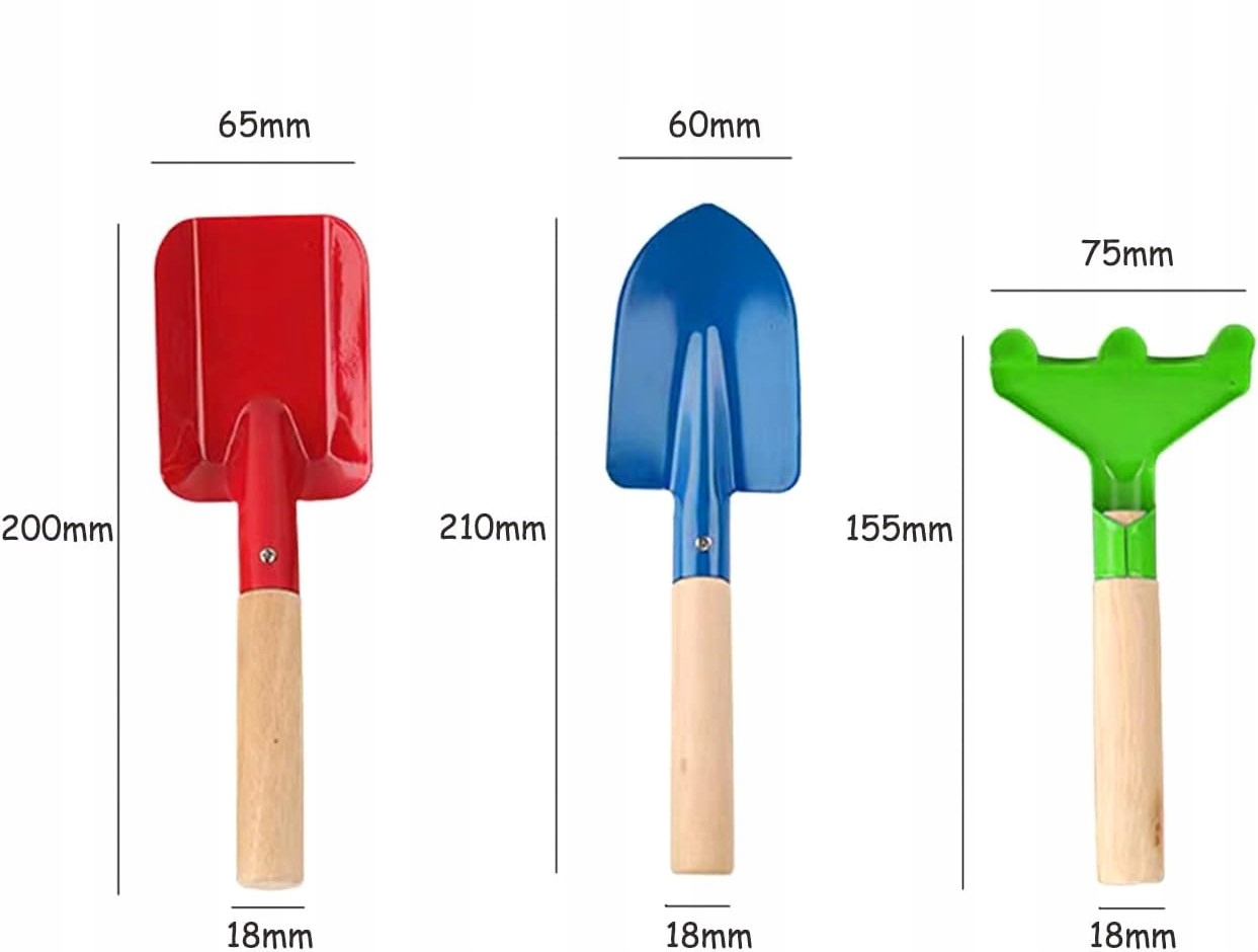 - 1. Стандартна лопата:міцна лопата з ергономічною ручкою, яка робить копання землі, висаджування рослин і збирання листя легким і веселим для маленьких ручок.