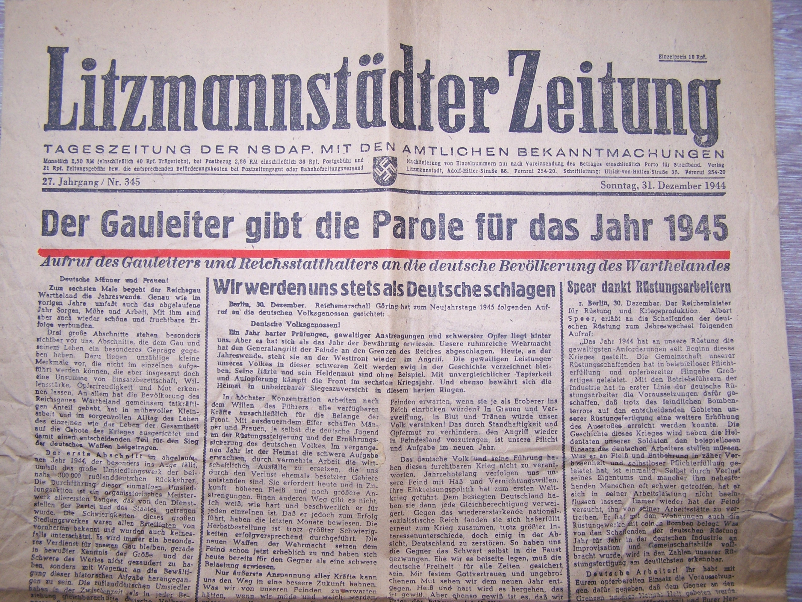 LITZMANNSTADTER ZEITUNG - ŁÓDZKA GAZETA Z 31.XII.1944 ROKU.