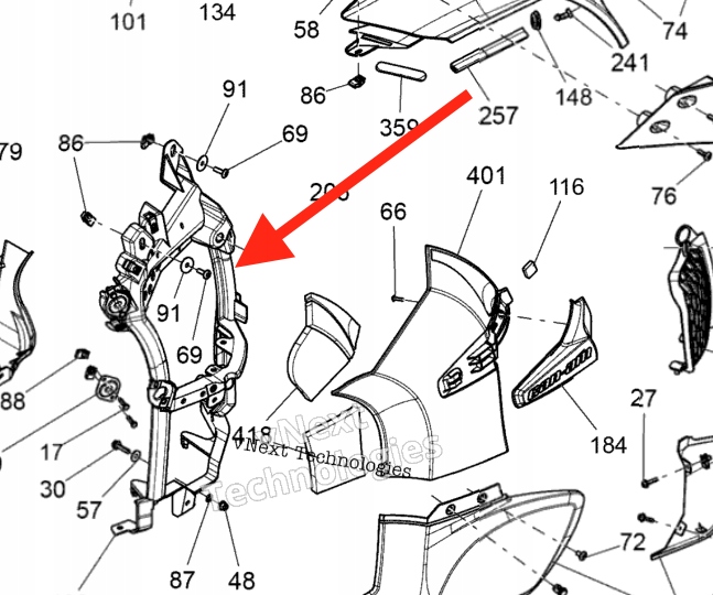 Ліва підтримка Can-Am Spyder RT 2010-2019 705009063