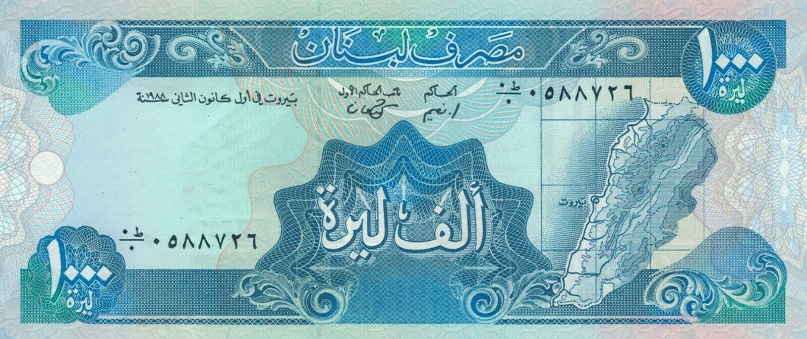 Красива банкнота в 1000 ліврів з Лівану - 1988 рік. (P-69a) у банківському стані I (UNC).