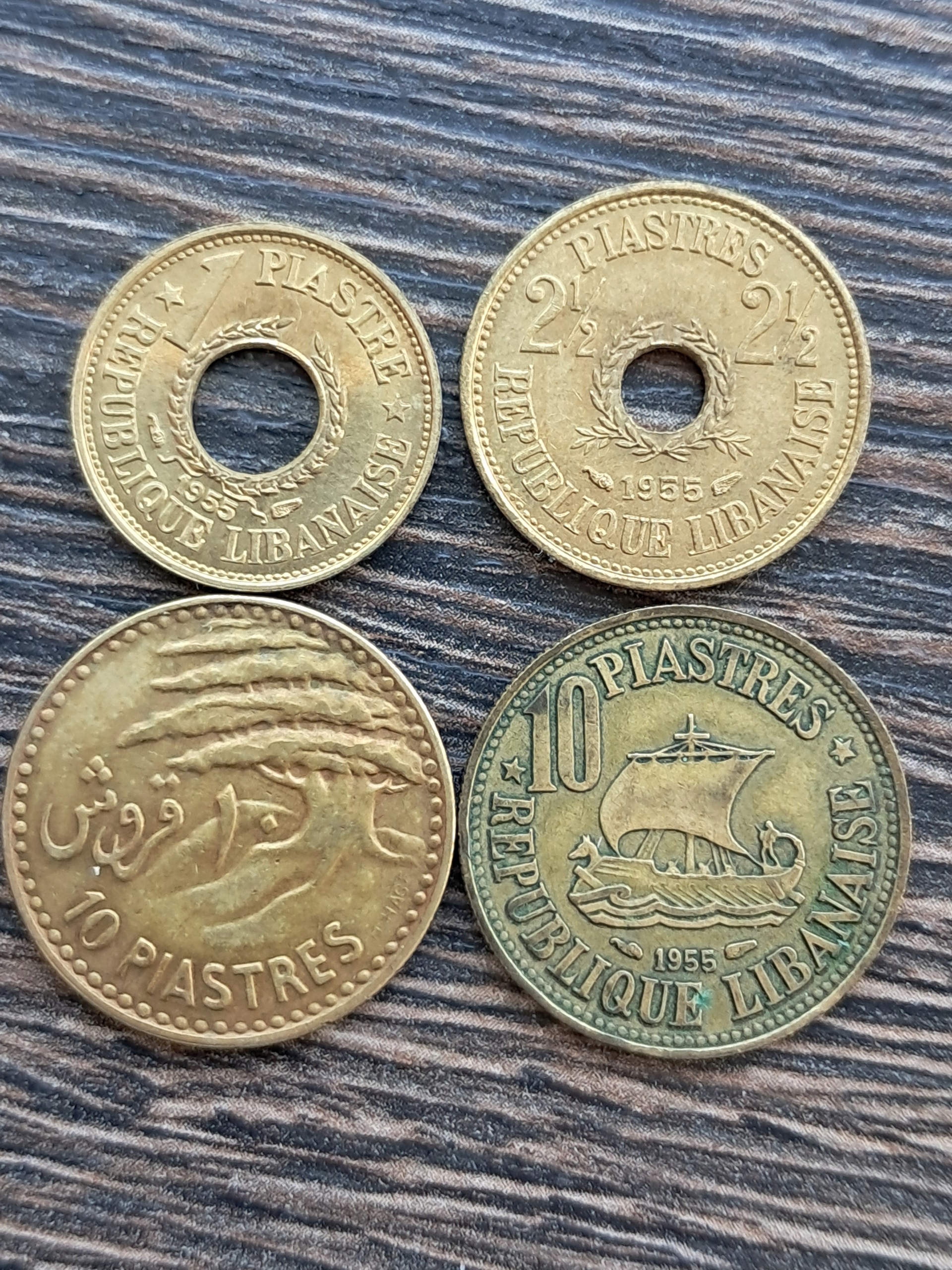 Ліванський набір з 4 монет Пасти 10, 10, 2 1/2 та 1 Piastr 1955