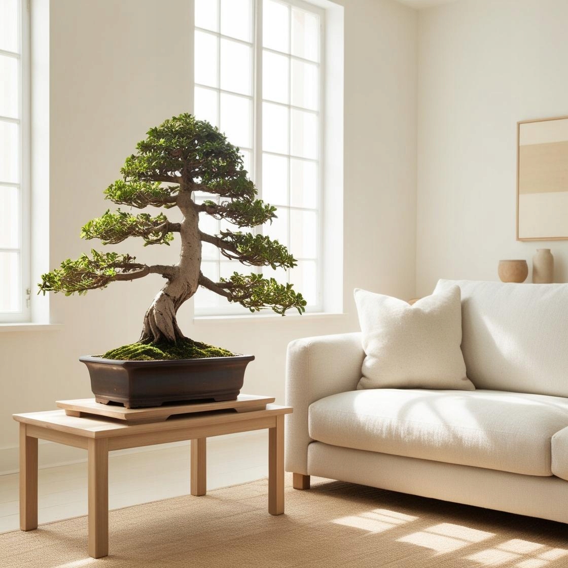 Стиль та елегантність у вашому інтер'єрі - Бонсай - це не лише рослина, але живе мистецтво , що надає простору унікальний, природний характер. Його гармонійна форма робить кожну кімнату більш затишною та повною життям.