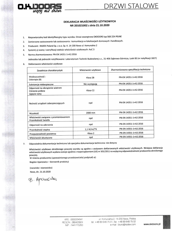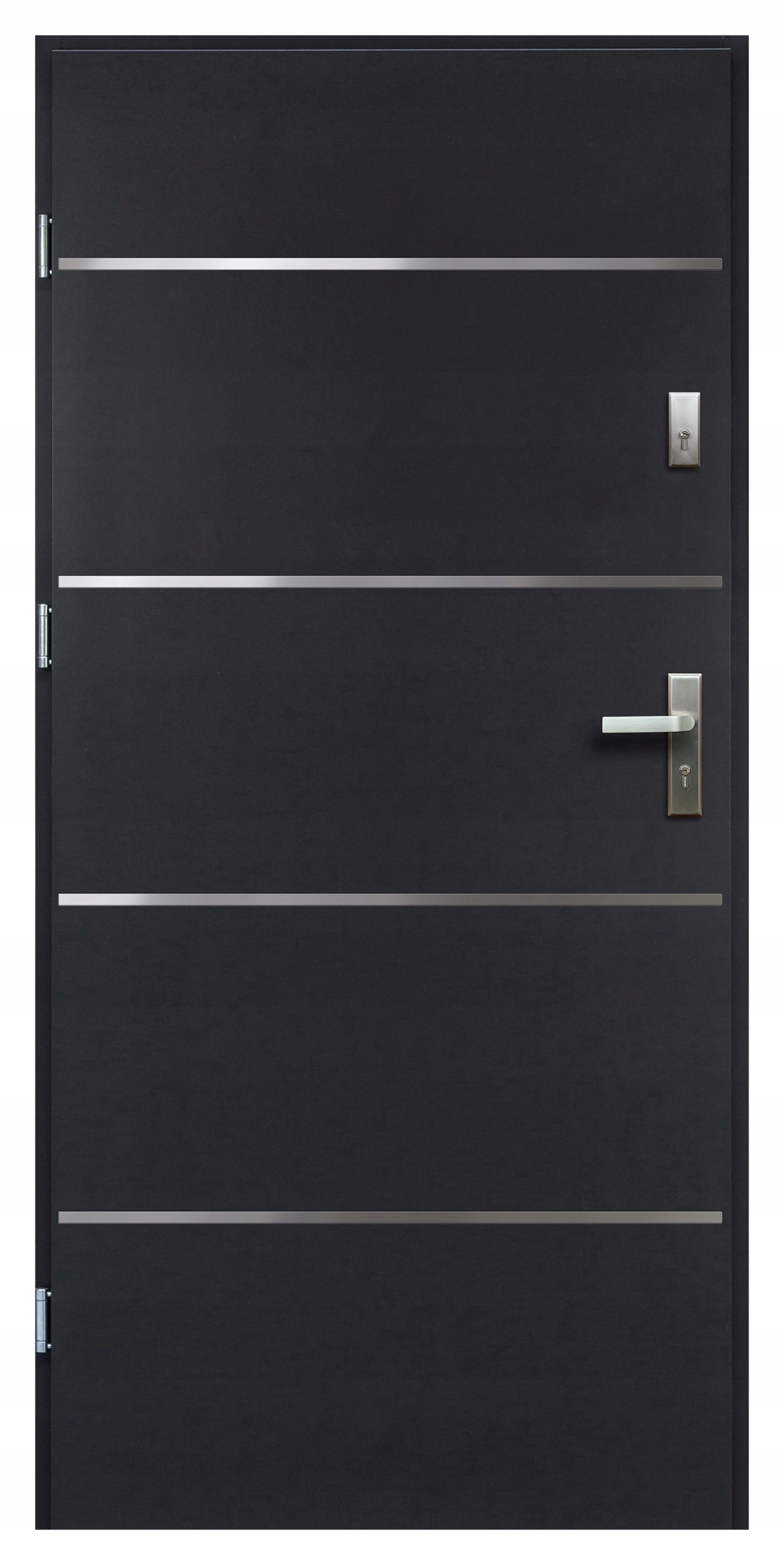Двері товщиною 68 мм з листової сталі, покритої декоративною плівкою ПВХ зі структурою і кольором дерева, стійкою до УФ-випромінювання. Наповнення дверного полотна - пінополістирольна плита.