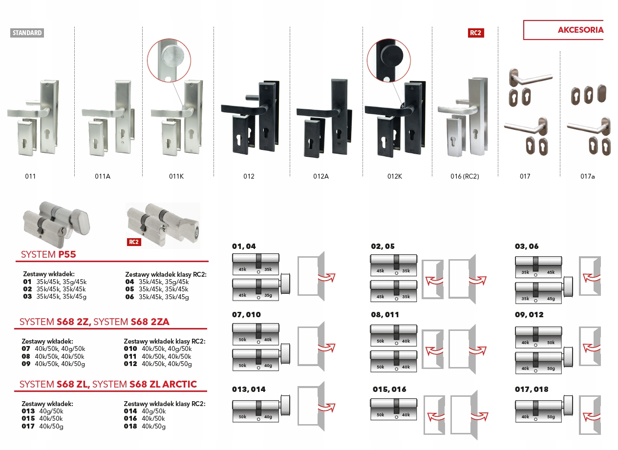 - Стандартне оснащення: ручка з пластиною 011, 07 циліндрів*