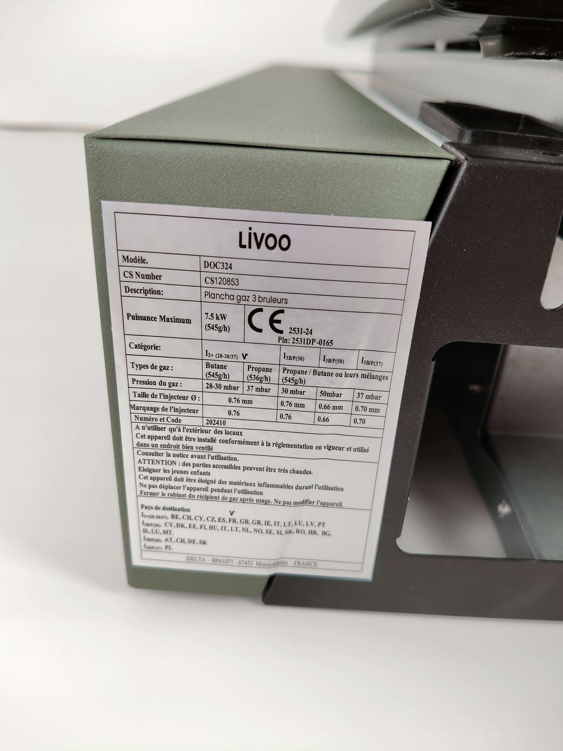 LIVOO DOC324 - Плита газова гриль з 3 конфорками