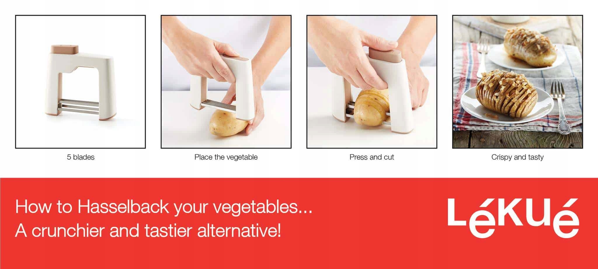 Lékué Hasselback Cutter із Hasselback Cutter для більш хрусткої та смачної альтернативи простим запеченим або смаженим овочам.