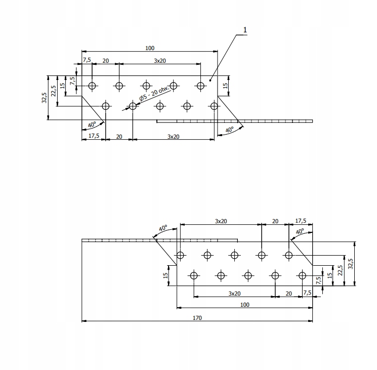 - Кількість отворів - 20 отворів Ø5mm