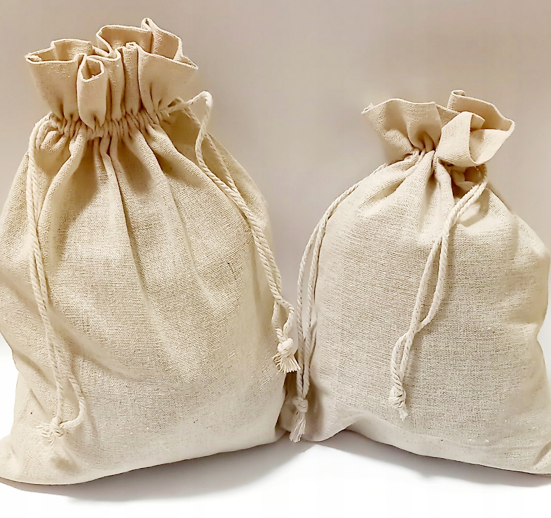 Міцна лляна сумка розміром 12 х 15 см, зав'язана ниткою з натуральної бавовни.