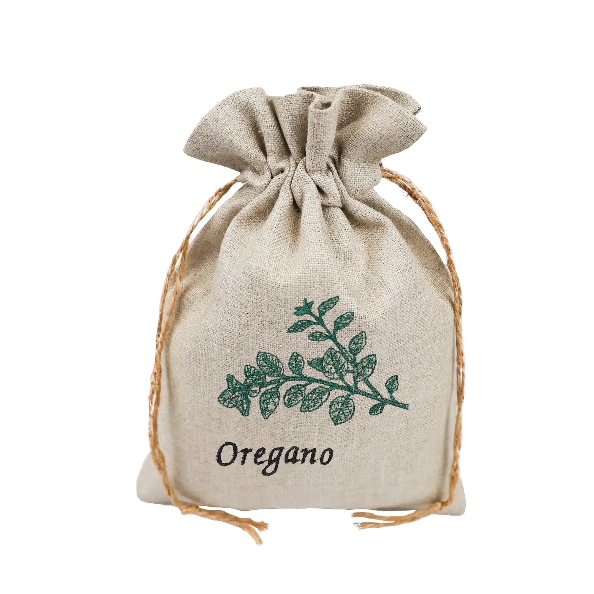 Лляний мішечок з травами з вишивкою орегано