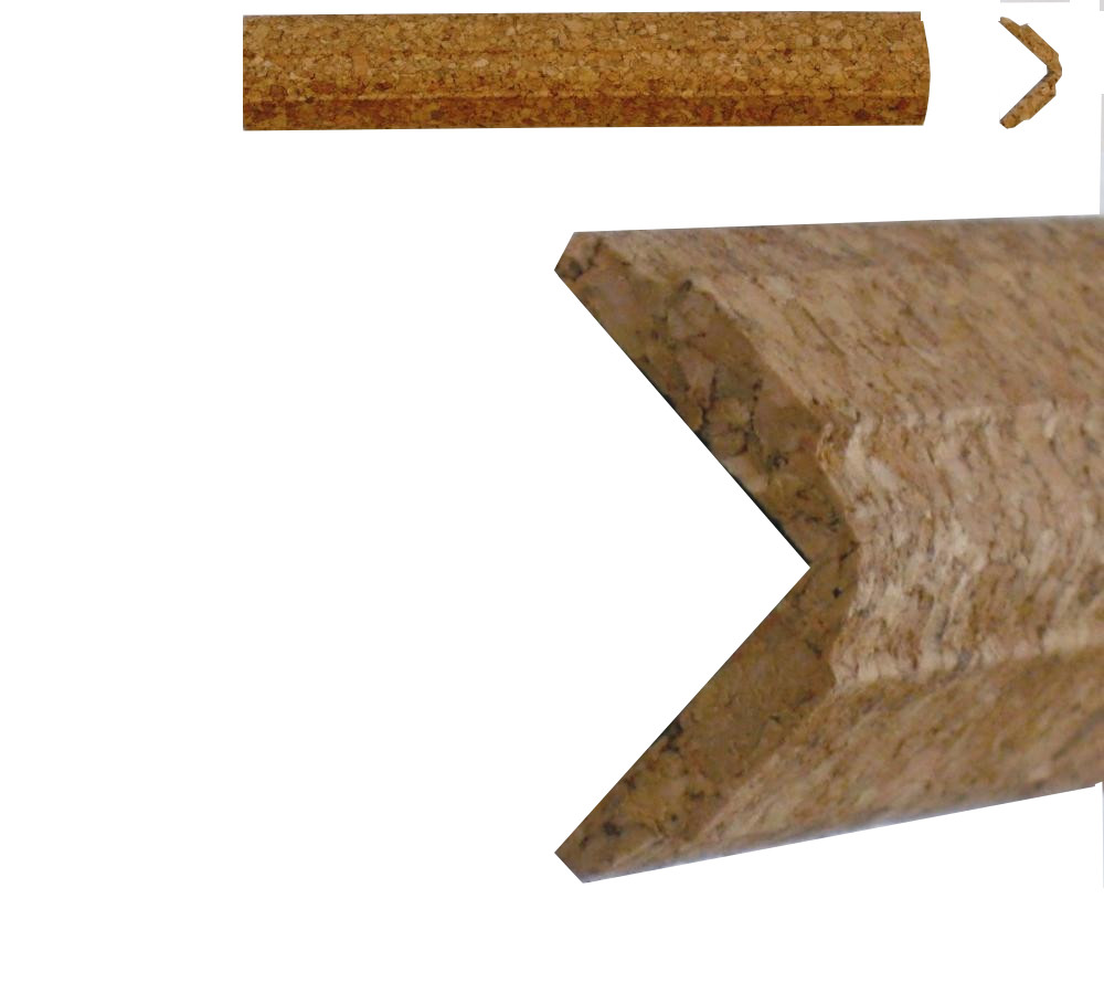 Оздоблювальні кути використовуються як декоративні та захищаючі елементи склеєної пробки. Вони також використовуються як плінтусні дошки для пробкових підлог.