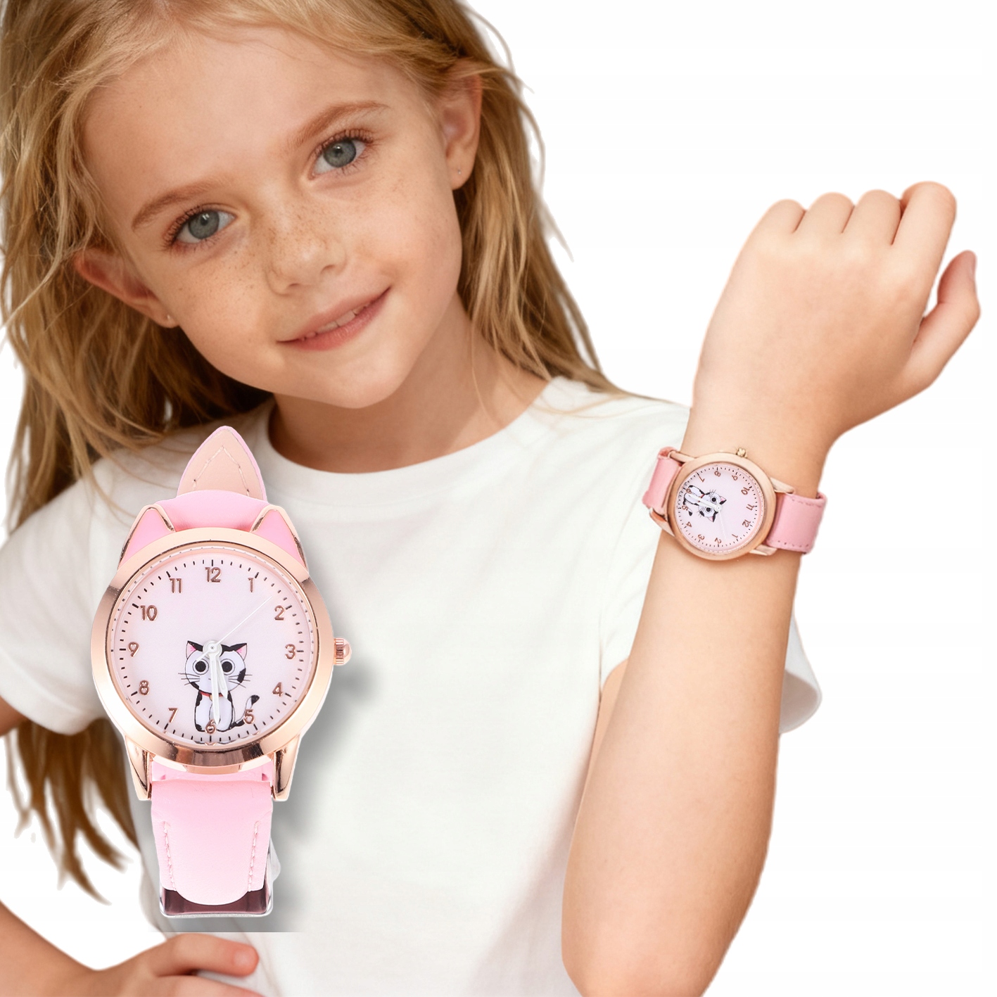БЛИСКУЧИЙ ГОДИННИК ДЛЯ ДІВЧАТ З КОТЯЧИМИ ВУШКАМИ І КОЛЬОРОМ