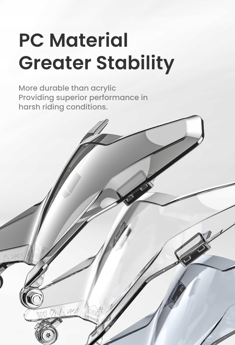 - Доступний у 3 кольори: виберіть між прозорим, світло-сірим або хромованим, щоб ідеально відповідати зовнішньому вигляду вашого BMW R 1300 GS.