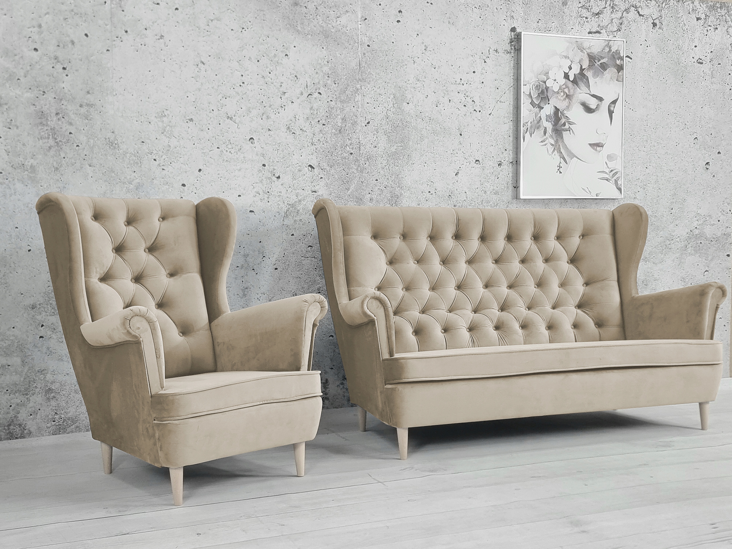 LOCATION SET стьобаний диван USZAK III + КРІСЛО USZAK GLAMOUR STYLE