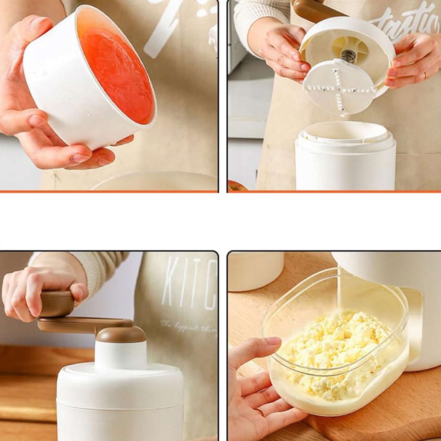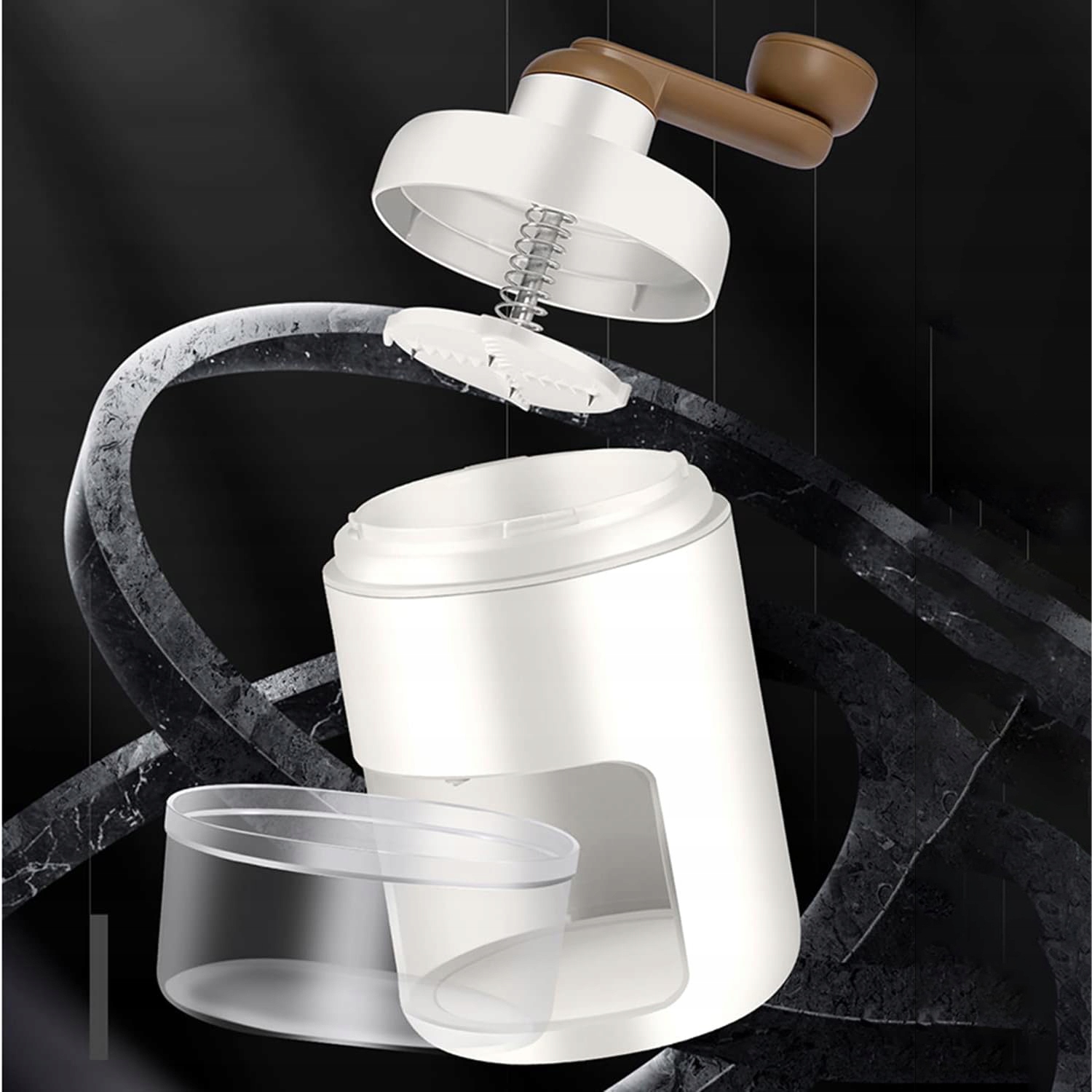- Просто додайте кубики льоду, поверніть ручку та спостерігайте, як подрібнений лід падає в чашу.