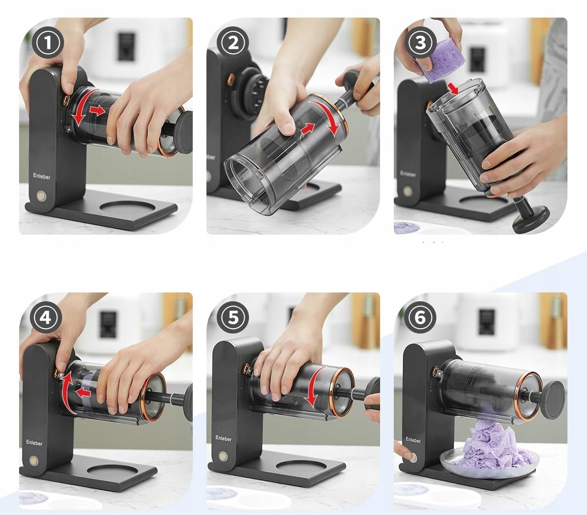 - ШИРОКИЙ СПІЛЬ ЗАСТОСУВАННЯ; Ця дивовижна дробарка для льоду та слизу використовується не лише для подрібнення льоду, але й для приготування чудових сорбетів, слизей, коктейлів і смузі! Без використання льоду чи інших інгредієнтів оригінальний смак залишається незаплямованим, справді приголомшливим!