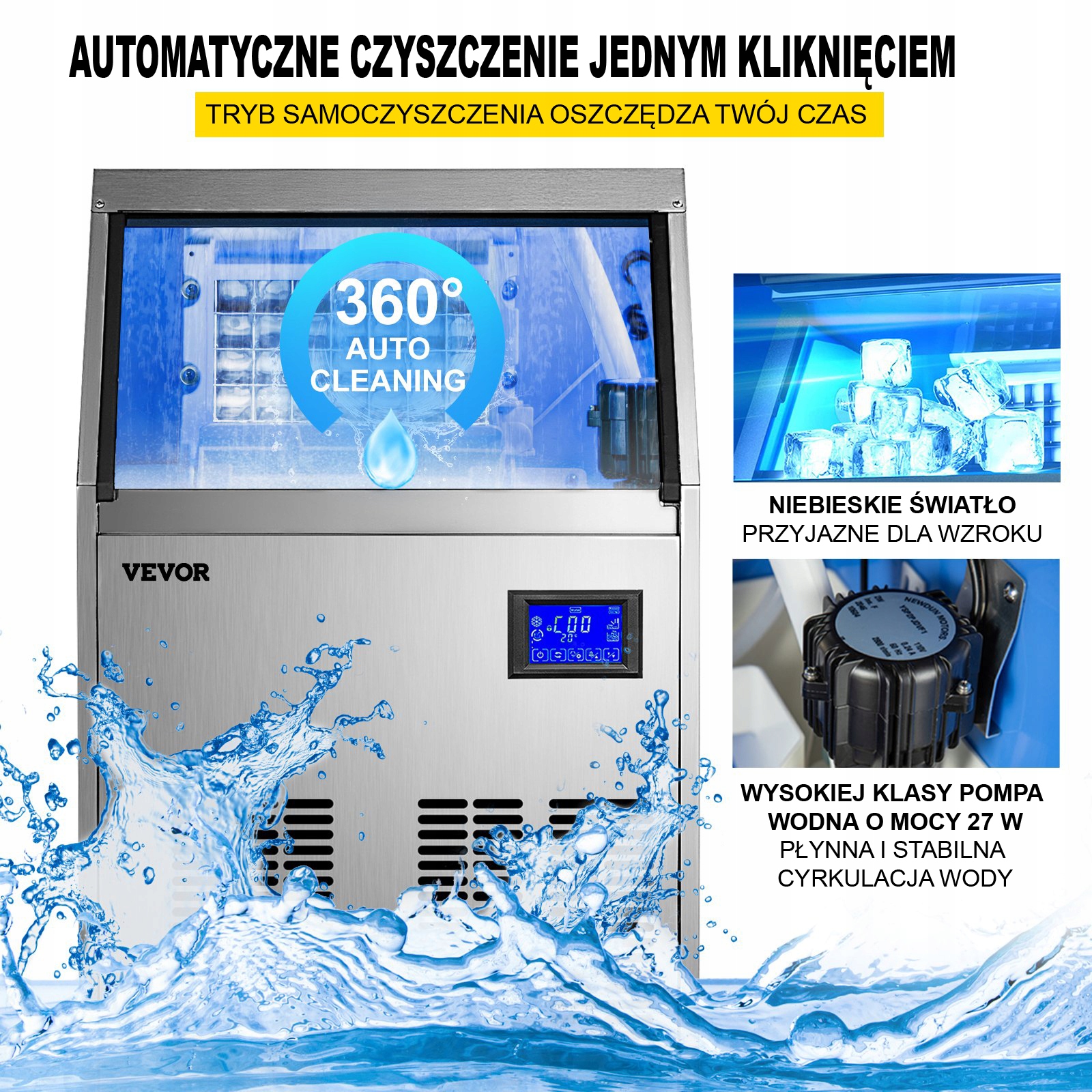 Льодогенератор VEVOR, 68 кг/24 год, 335 Вт, якісний фільтр для води