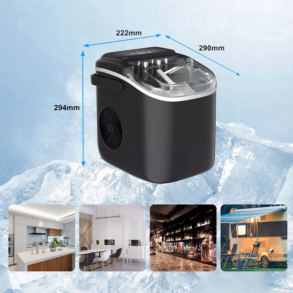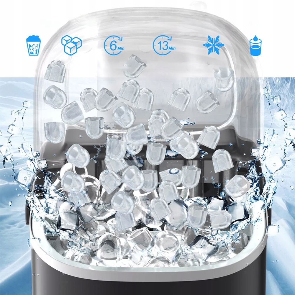 🧊-Формування 9 кубиків льоду у формі кулі займає лише 6 хвилин, і протягом 24 годин ви можете виробляти до 12 кг льоду.