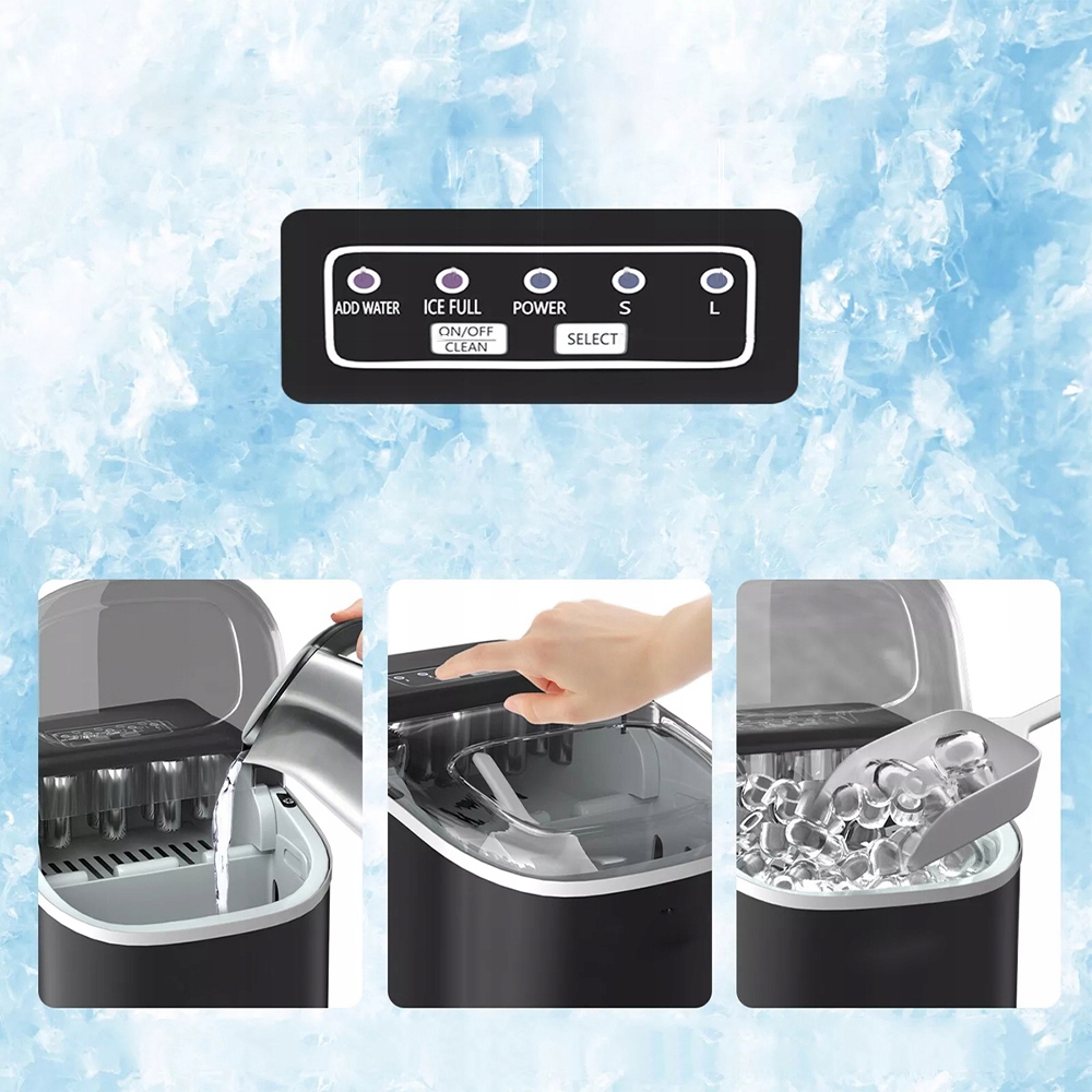 🧊, дякую, на просту у використанні панель управління, висипте воду в кубик льодом, натисніть кнопку, виберіть кубики льоду та готові. Світло індикатора освітлюється, коли більше води не буде або контейнер повна.