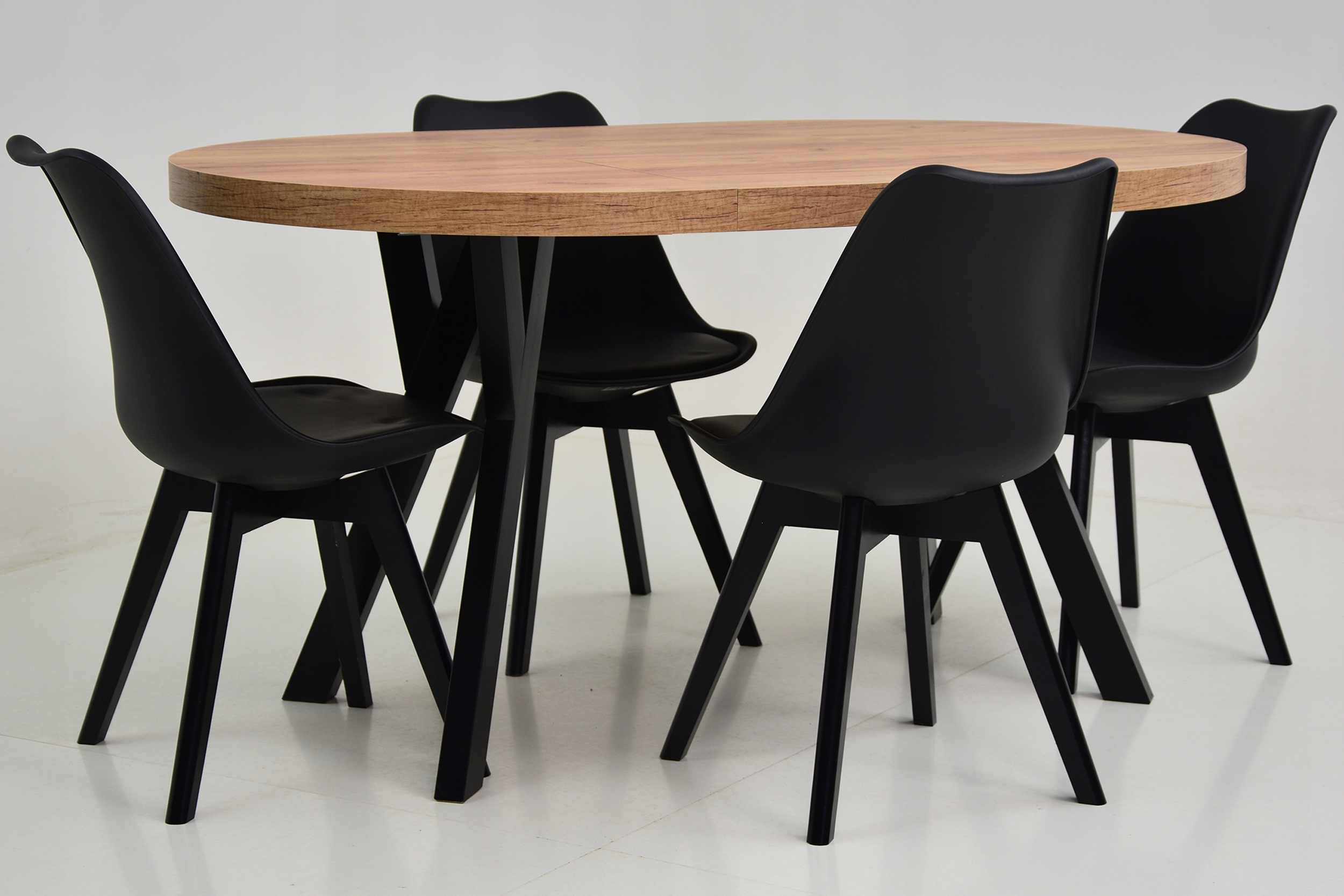 стільці: сидіння: чорне; Ноги: чорні; Топ: дуб ремесла;
