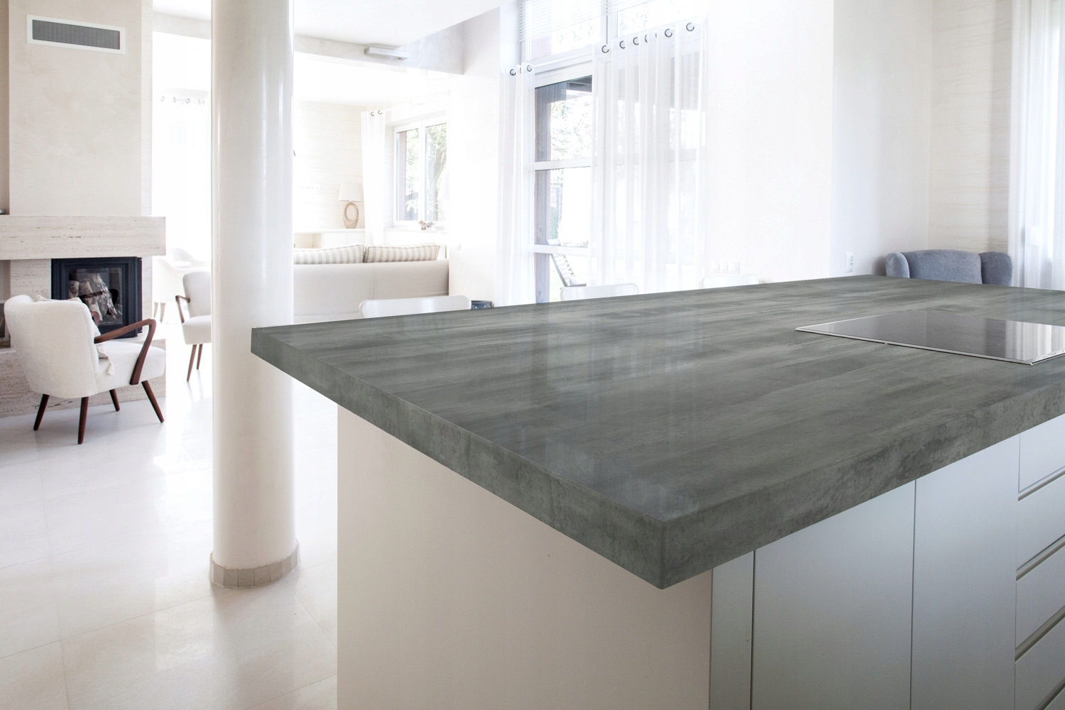 Ефект бетону ідеально підходить для індустріальних, суворих приміщень. Гладка імітація бетону гарантує модний і сучасний інтер'єр.