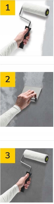 Jeger Loft Concrete за допомогою кельми та ретельно перемішайте (якщо ви хочете отримати ефект двох кольорів, використовуйте кожен колір окремо - не змішайте їх). Не розбавляти, продукт готовий до використання. Нанесіть кельмою тонкий шар більш темного кольору і обережно розгладьте його. Залишити сохнути на 4 години. Потім нанесіть другий шар вертикальними нерівними смугами. Зробіть нерегулярний візерунок. Акуратно розгладьте вологу поверхню. Залиште висихати щонайменше на 12 годин.