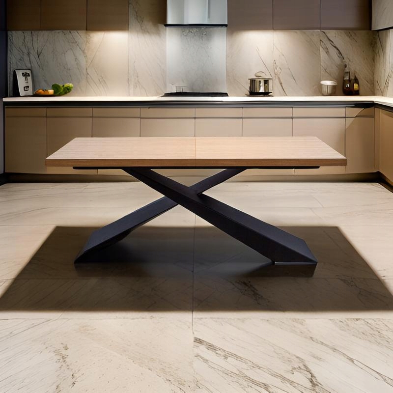 Стіл виготовлений з продуктів найвищої якості та найкращої деревини - колір ви можете вибрати. Ніжки столу виготовлені з металу, пофарбовані кращими фарбами. Красива зернистість створює ефект класичного дерева. Він має оригінальні ніжки, які не виходять з кутів столу, як у типових меблів - у цьому столі металева конструкція виходить із центральної частини столу. Метал у поєднанні з класичним деревом створює надзвичайно шикарне поєднання
